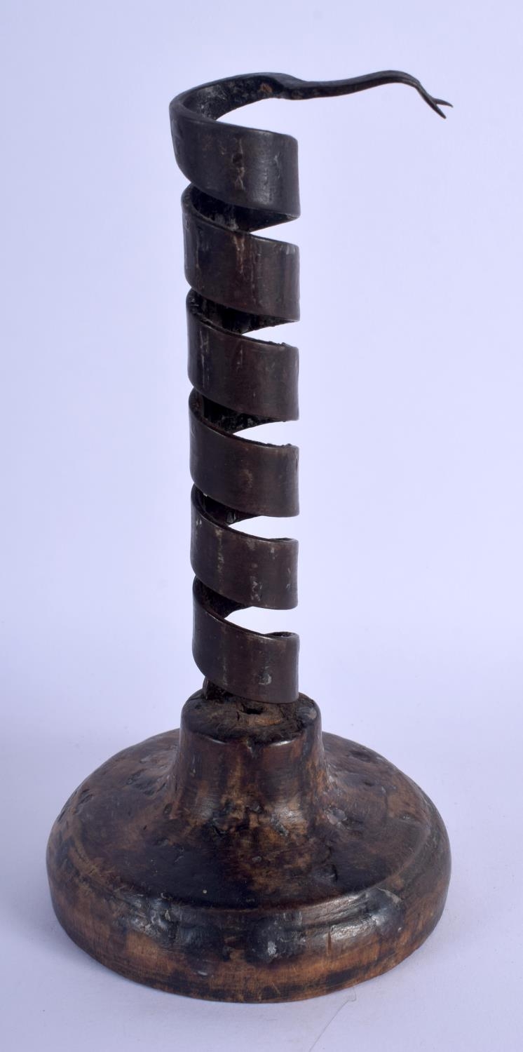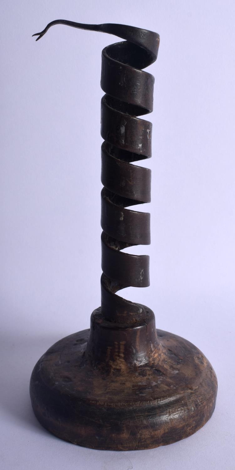AN EARLY CONTINENTAL PIGS TAIL SPIRAL CANDLESTICK. 20 cm high.