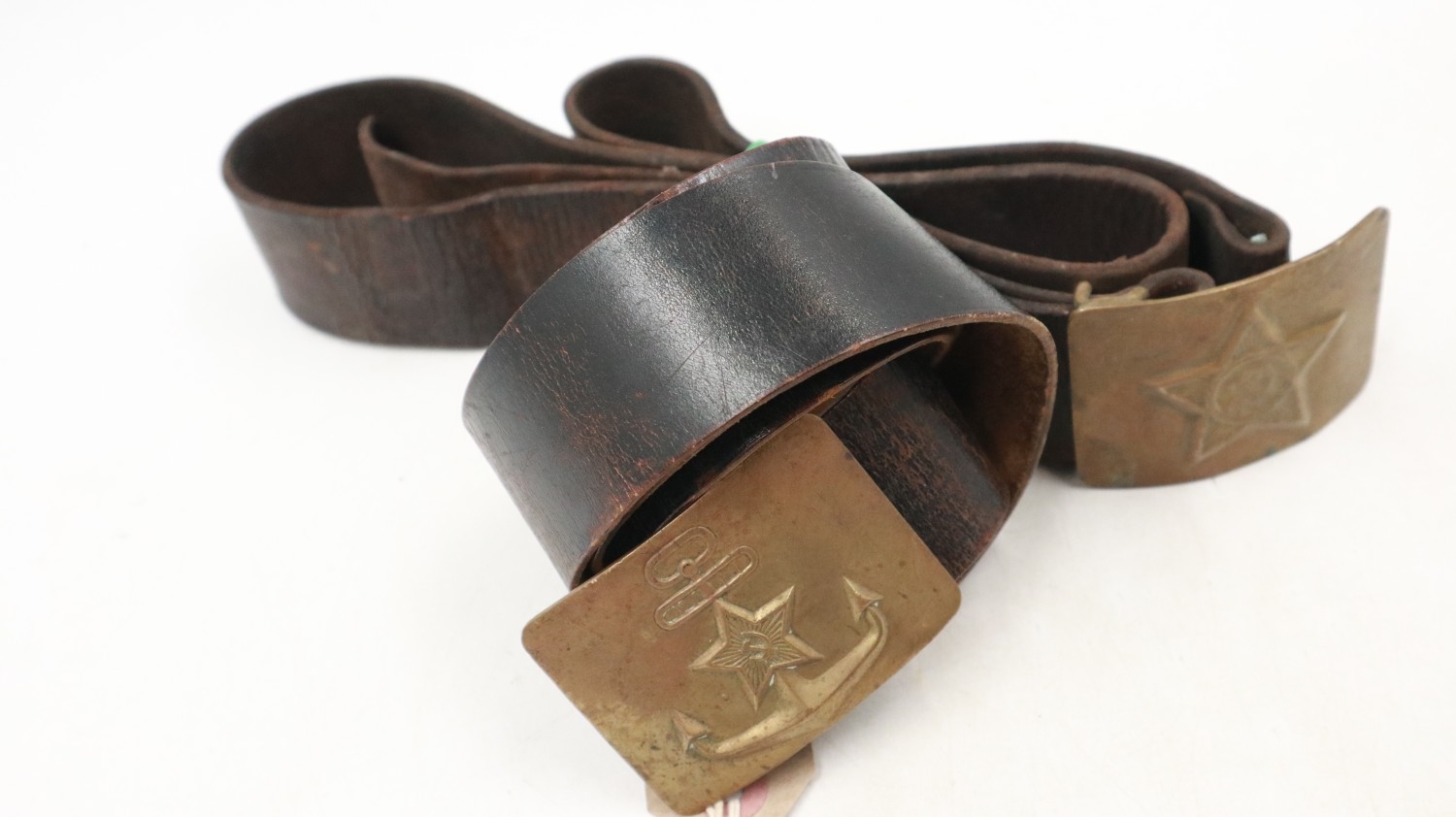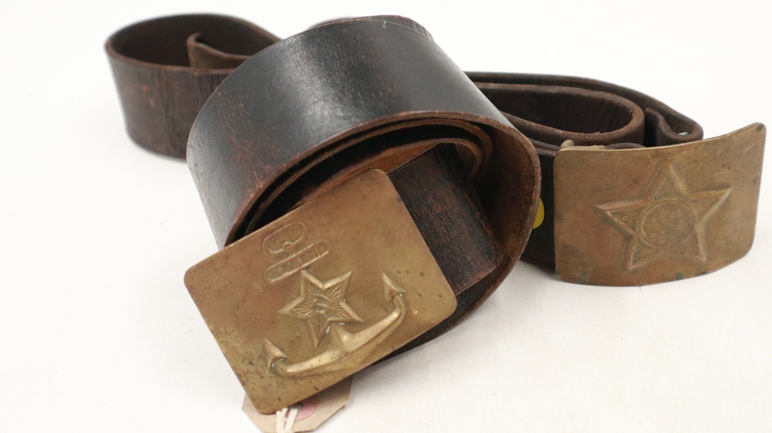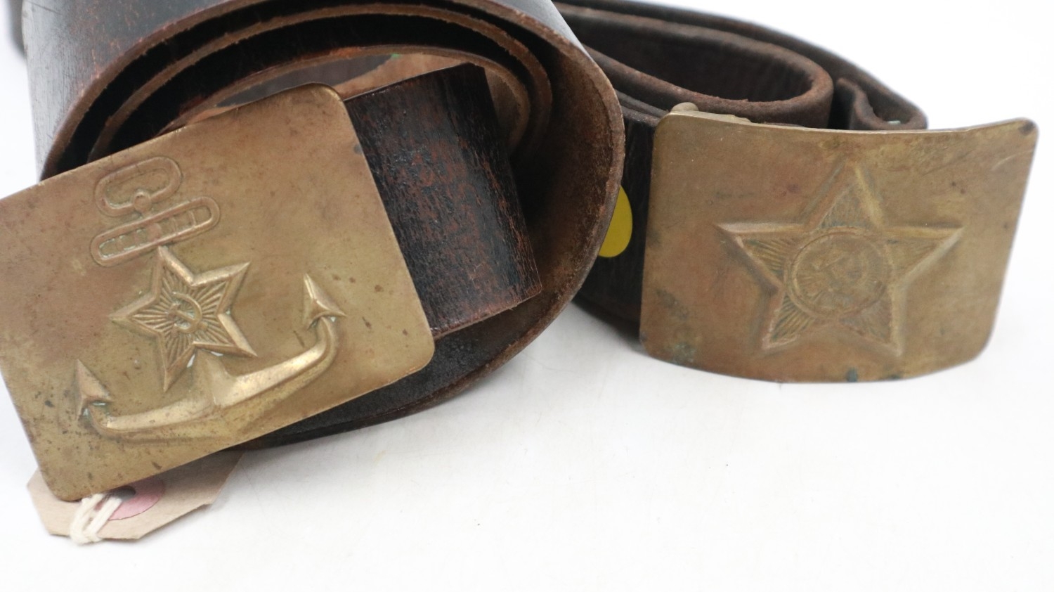 Two Soviet Russian belts, buckles for general Army and Navy in brass. UK P&P Group 2 (£24+VAT for the first lot and £5+VAT for subsequent lots)