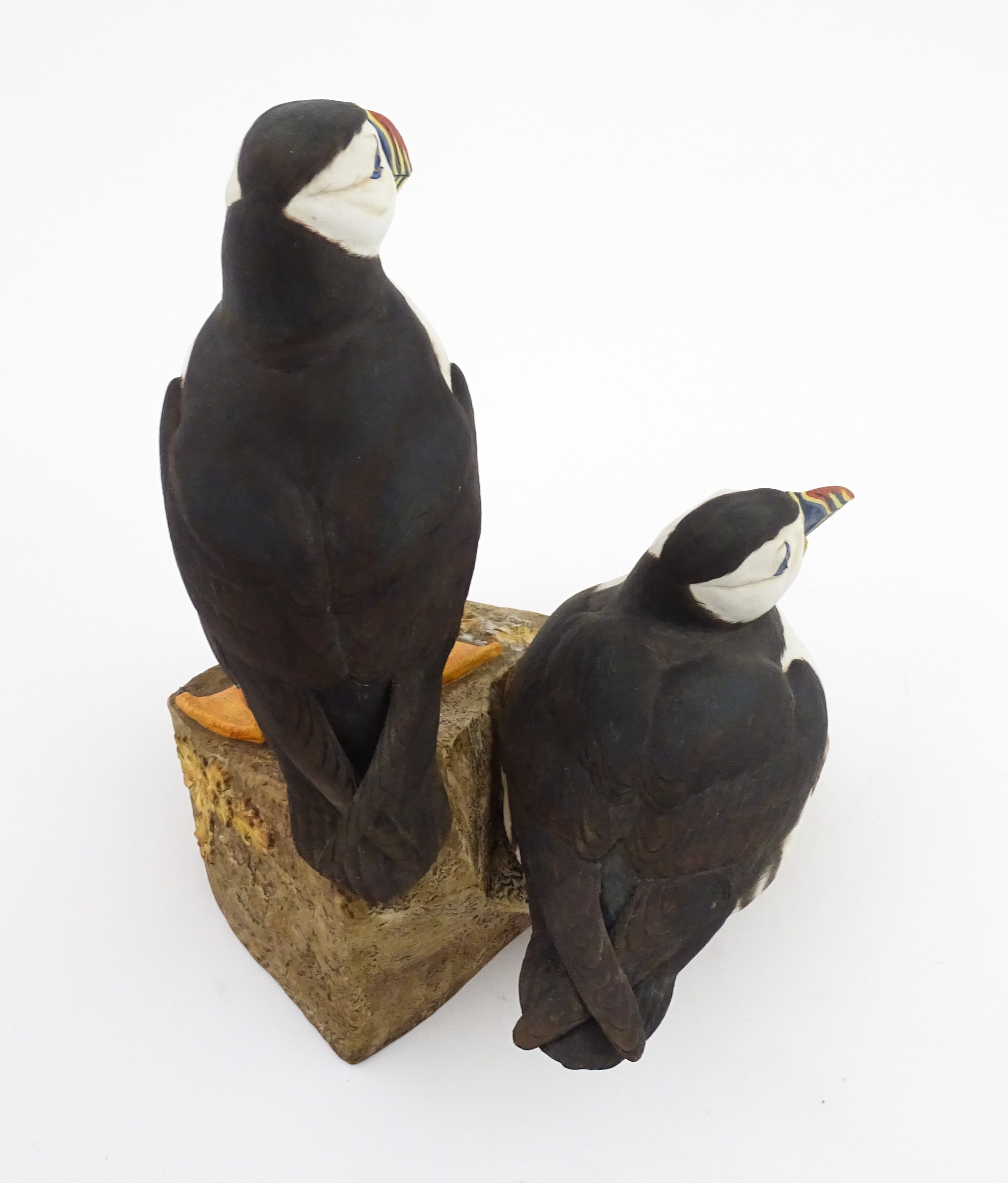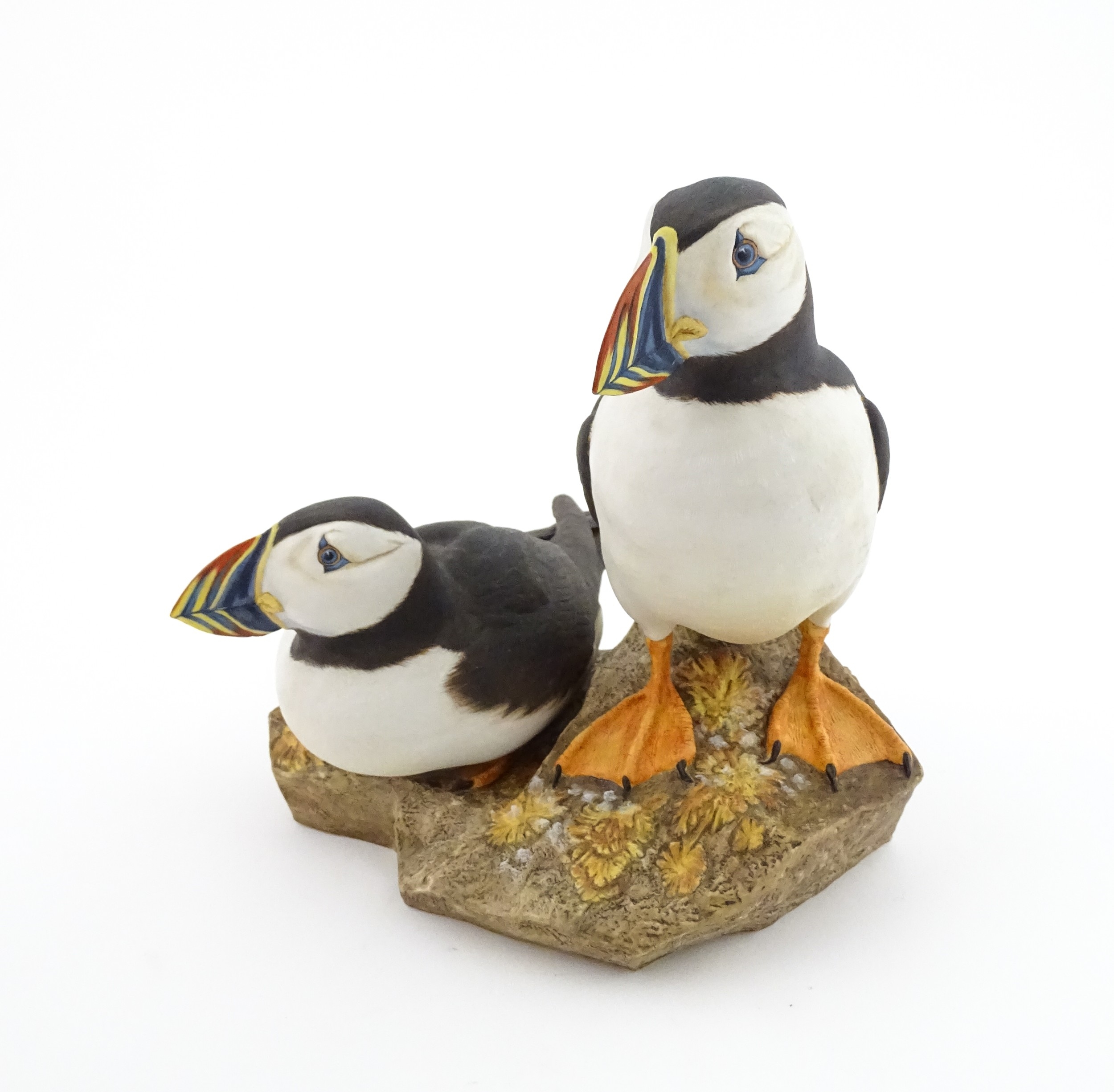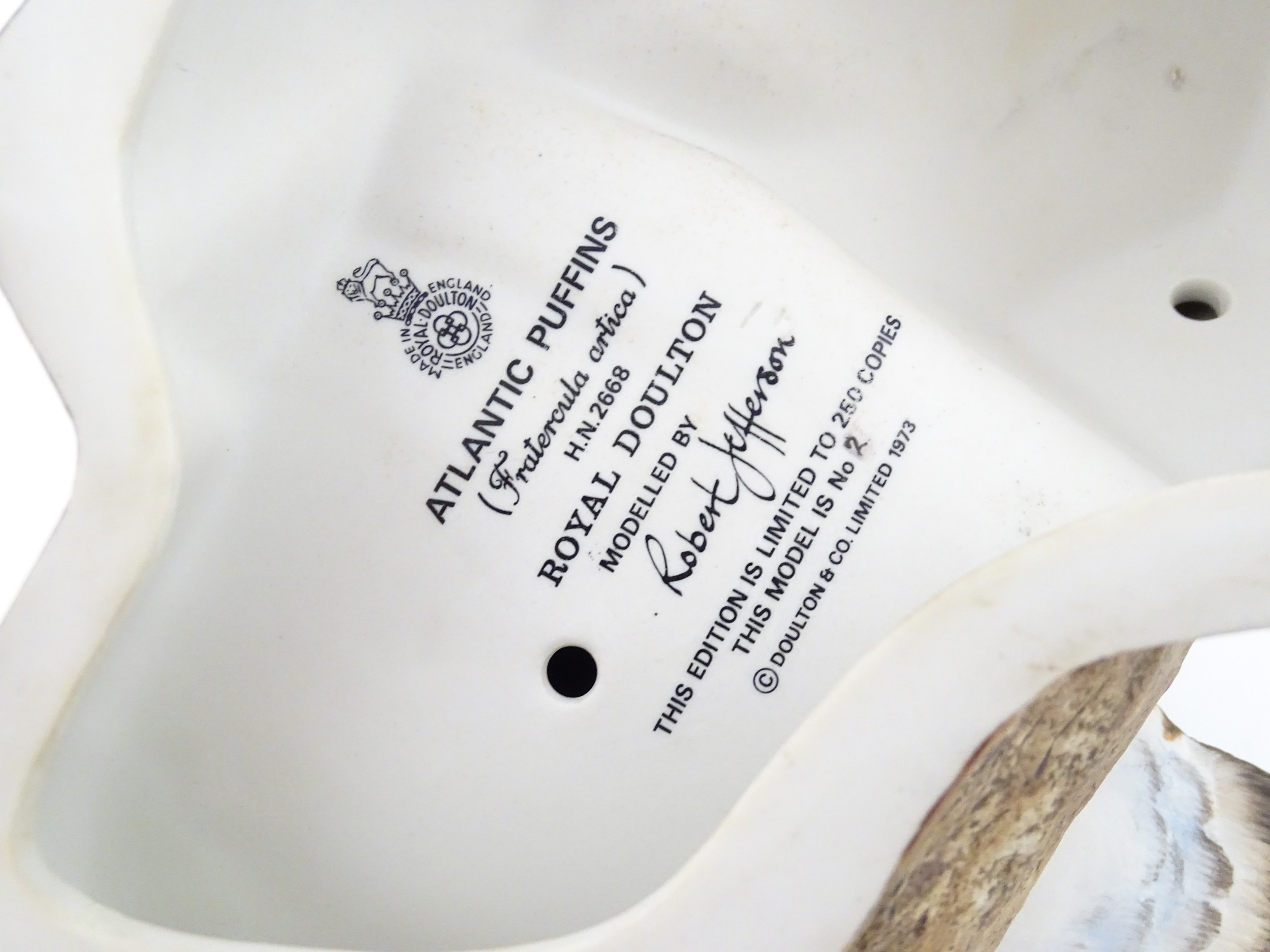 A Royal Doulton limited edition bird group titled Atlantic Puffins, modelled by Robert Jefferson. Marked under, model no. HN2668, limited edition no. 2 / 250. Approx. 9 1/2" high