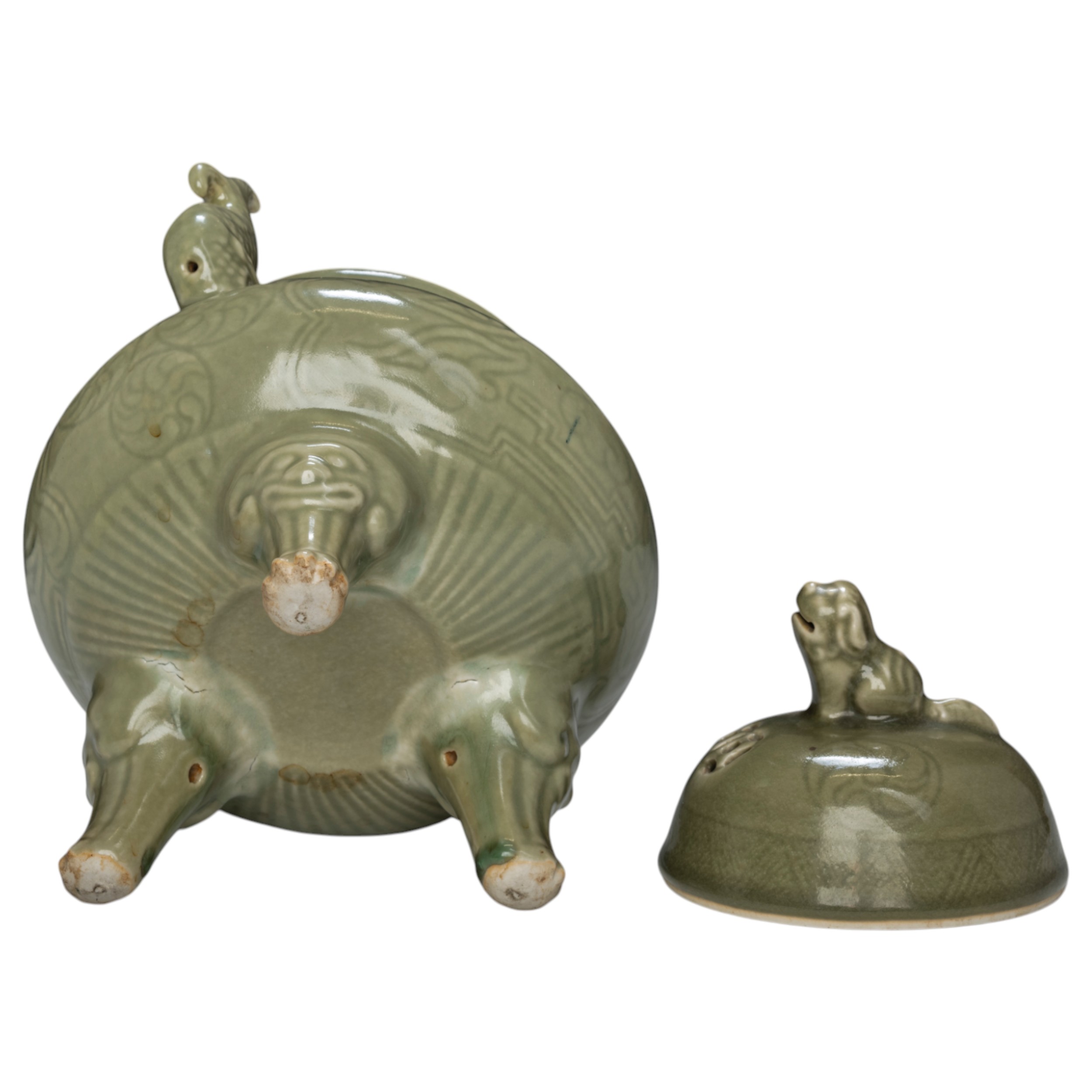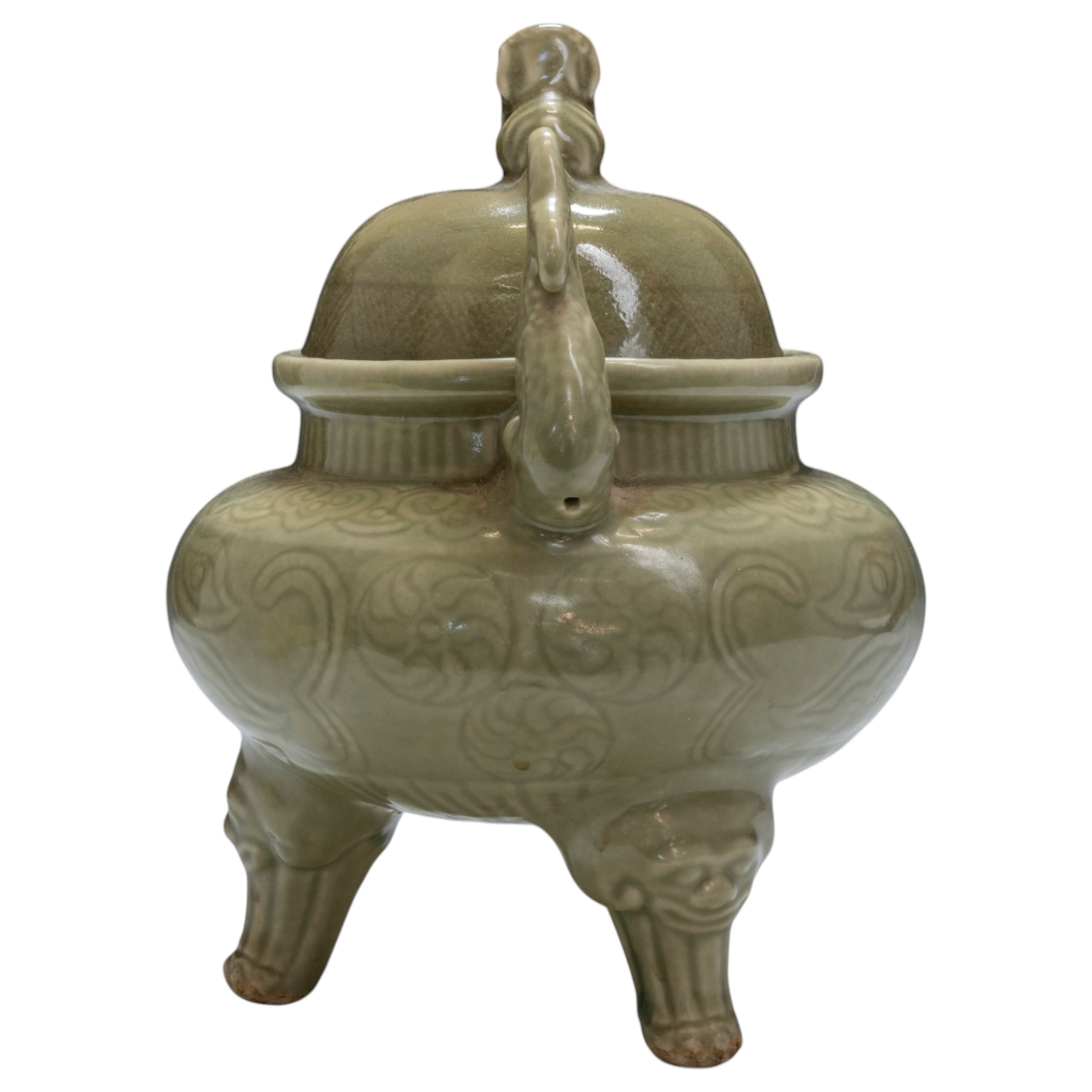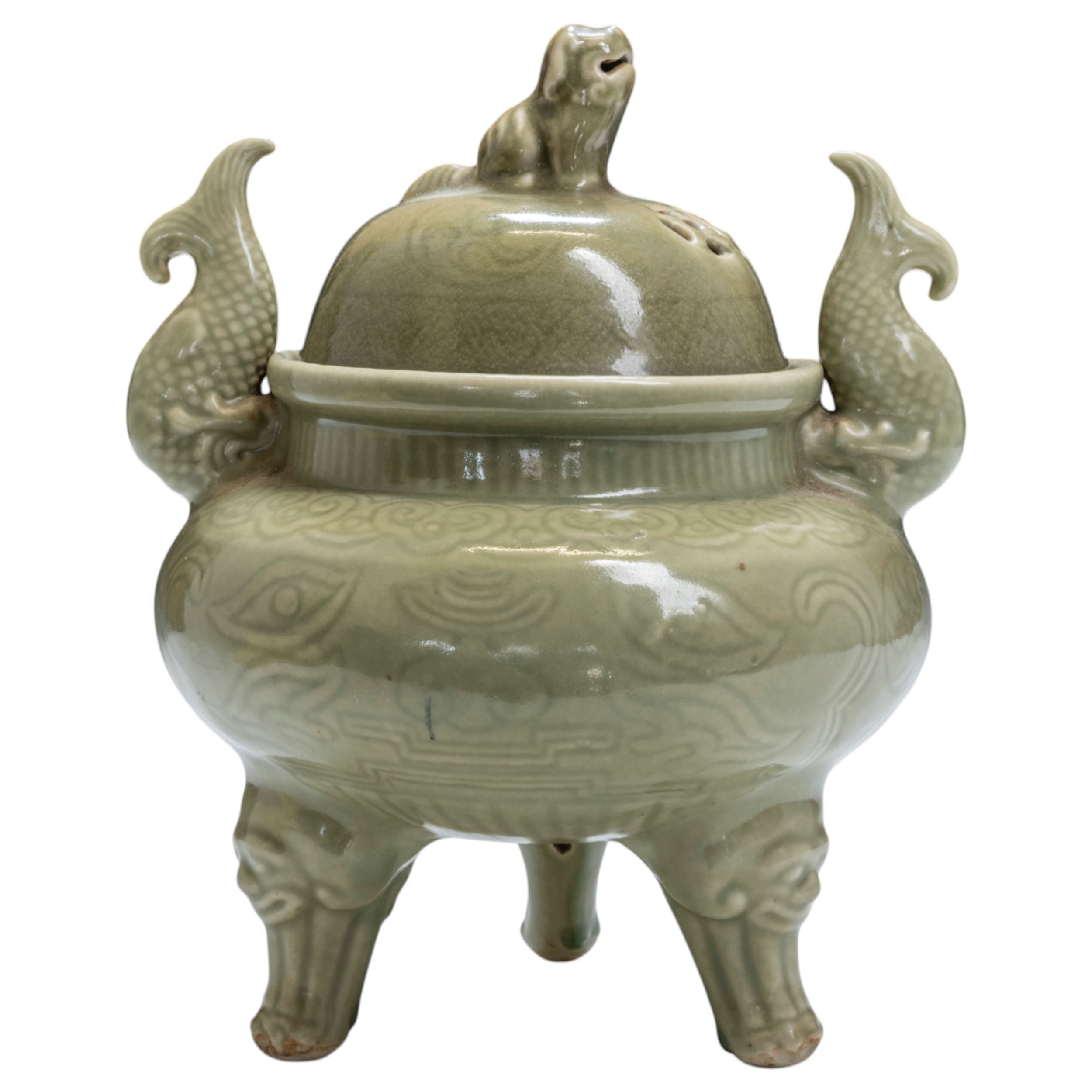 A CHINESE CELADON-GLAZED CENSER AND COVER