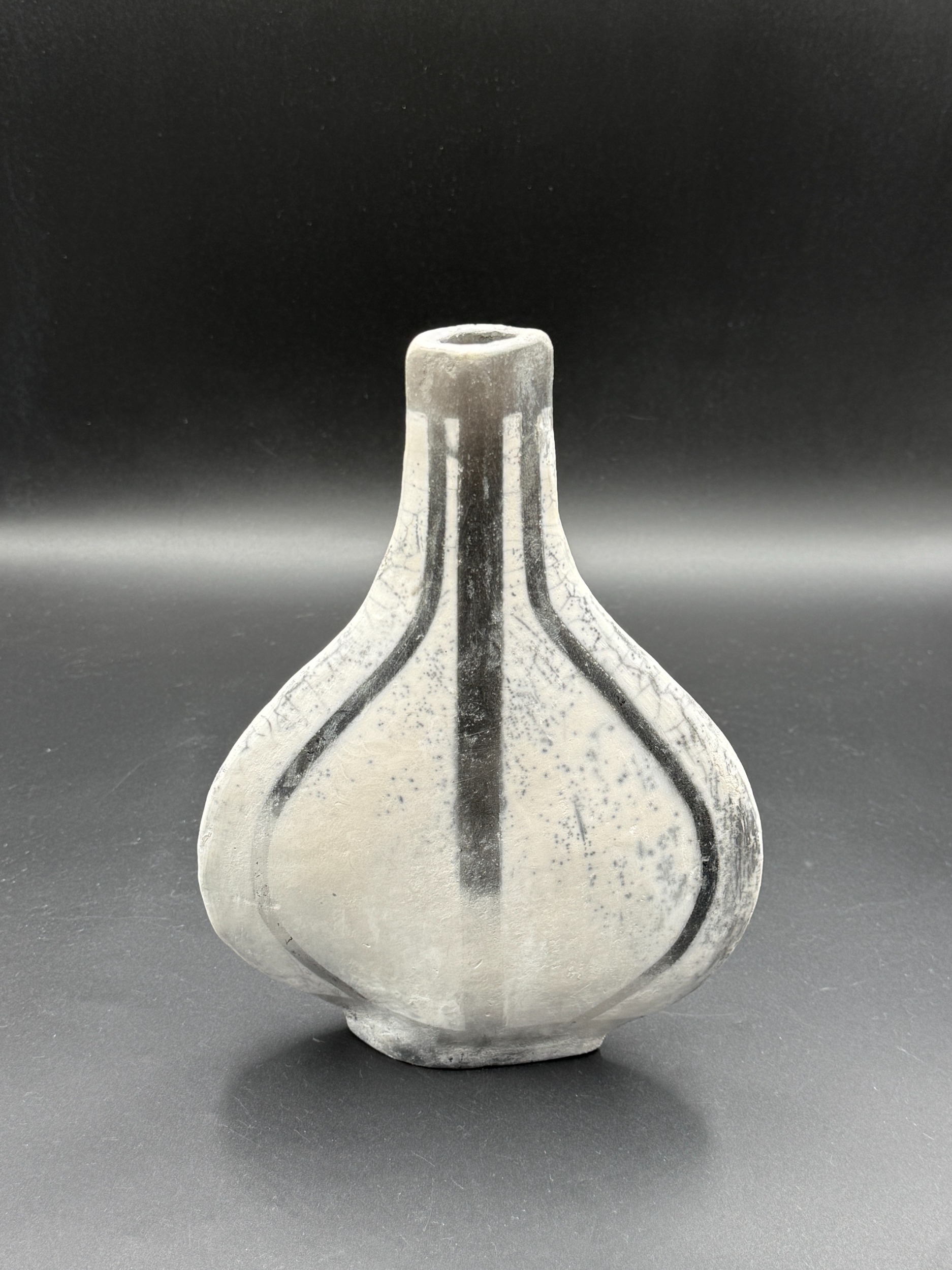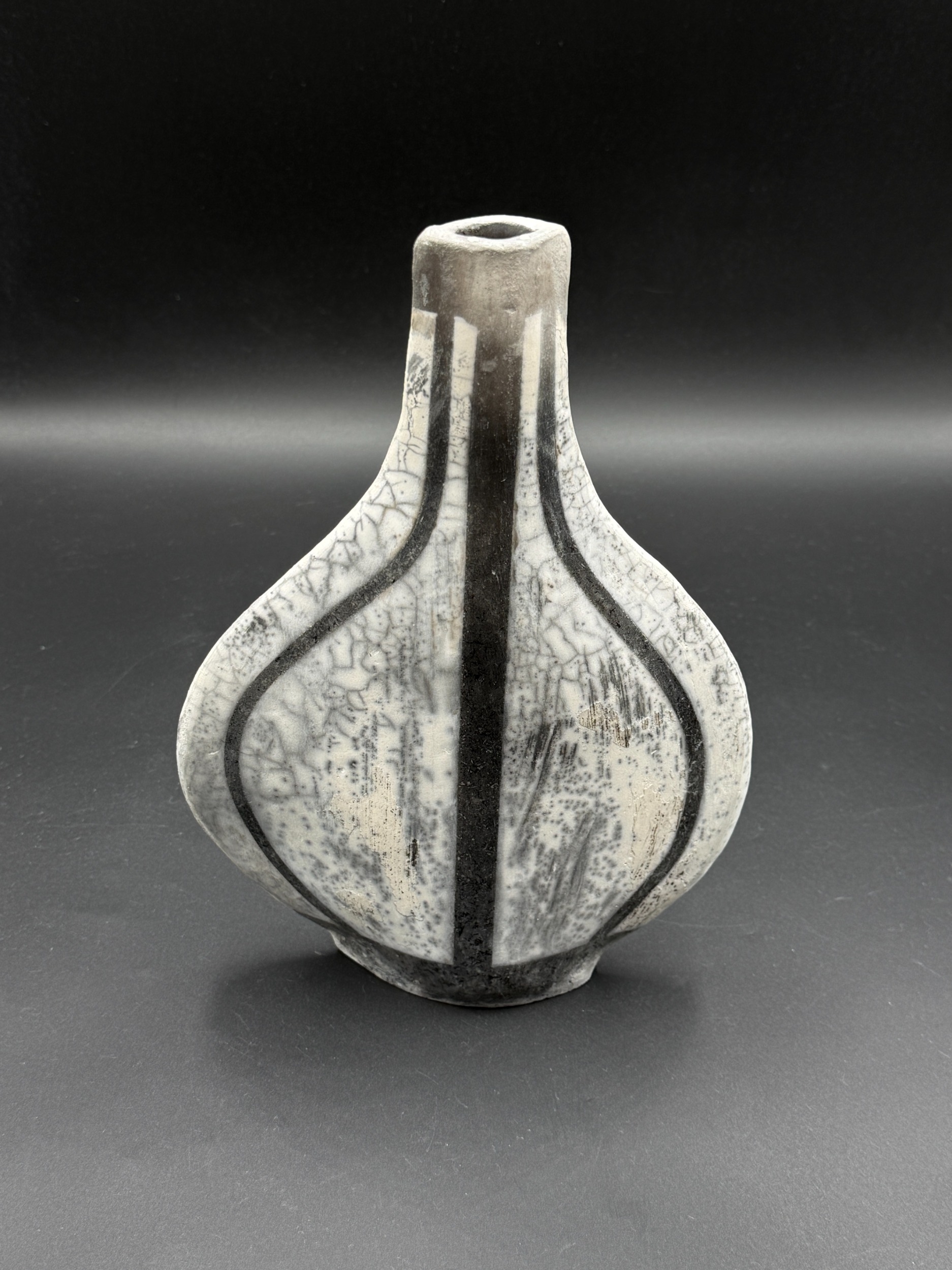 A Raku studio pottery bottle form vase, inscribed MC to base - approx. 24cm high