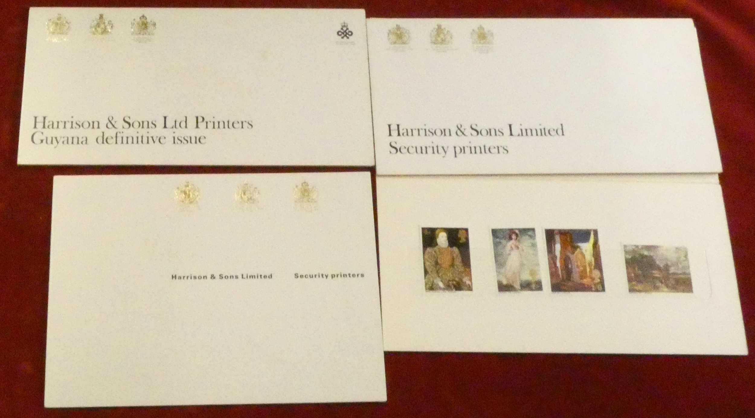 Great Britain 1966-68 four Harrison and Sons Ltd security printers presentation folders. British Birds, British Paintings first series, British Paintings second series and 1968 British Guyana birds and fish.