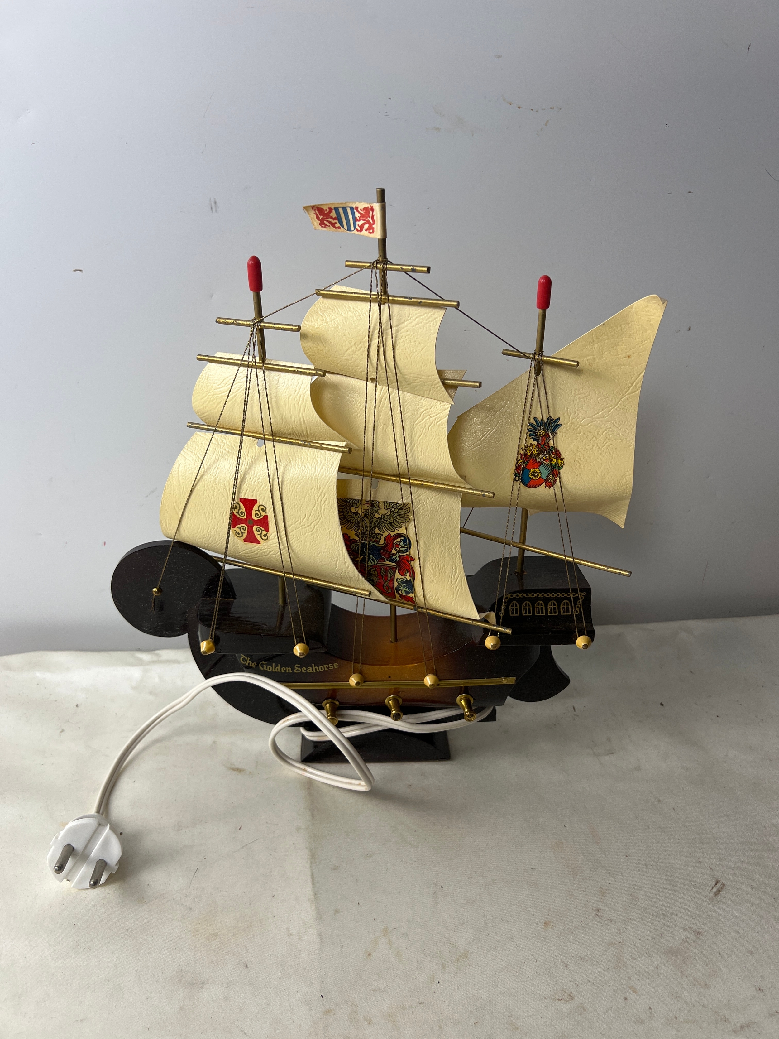 The golden seahorse wooden table lamp in good condition