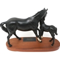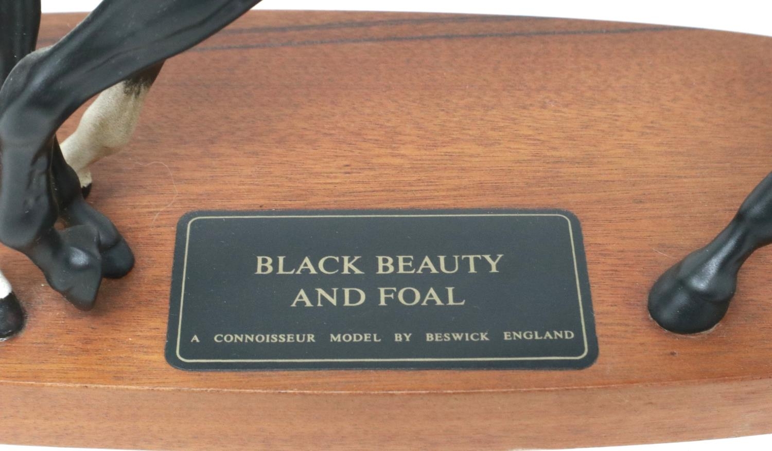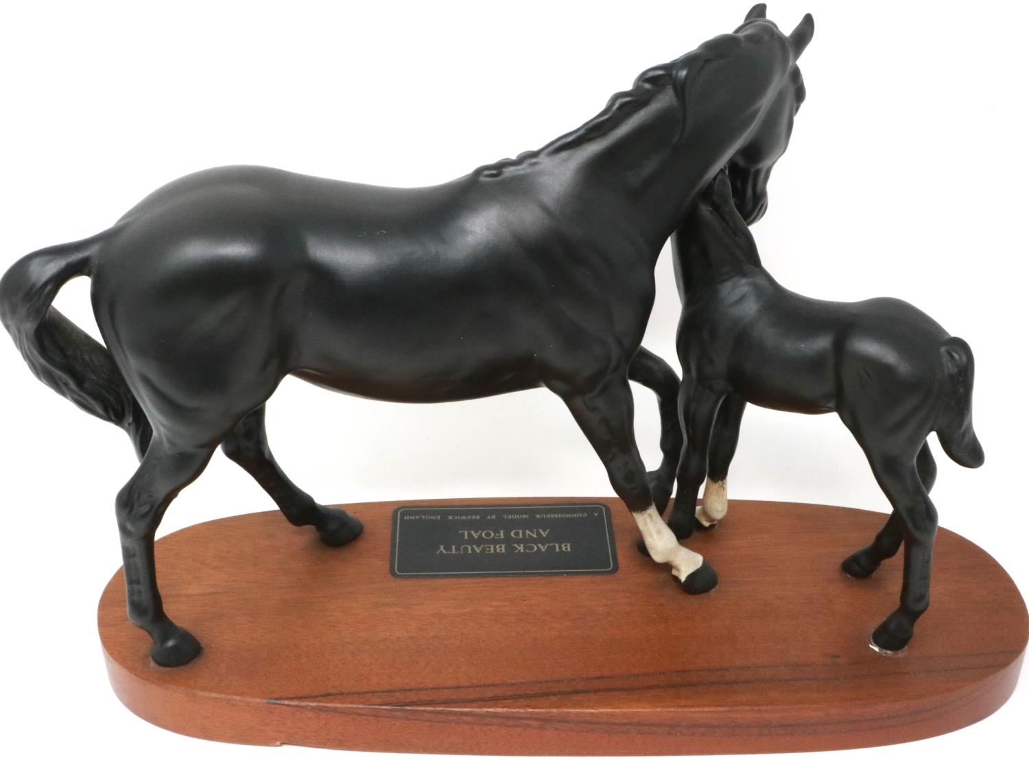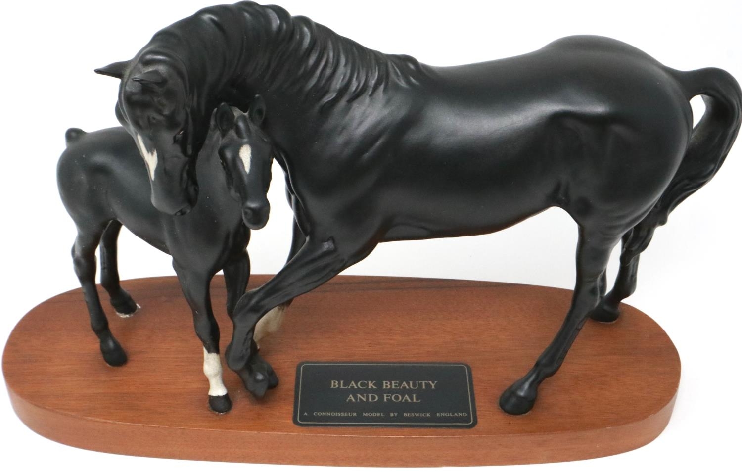 Beswick matte Black Beauty and Foal on wooden plinth, H: 20 cm. P&P Group 2 (£18+VAT for the first lot and £3+VAT for subsequent lots)