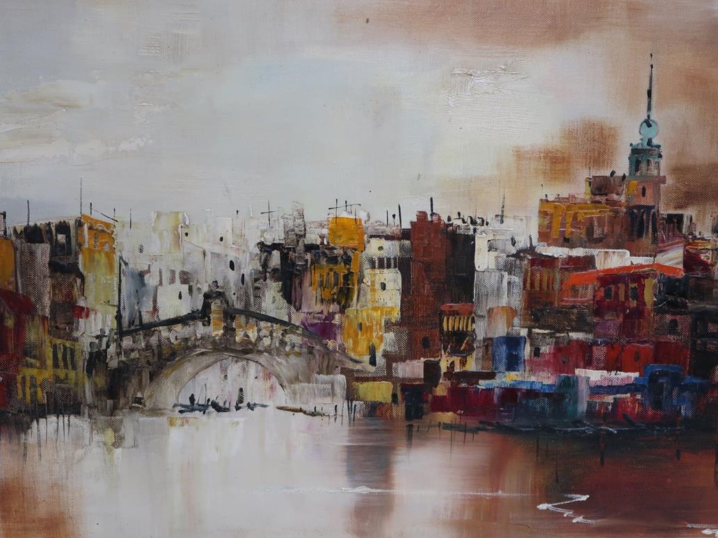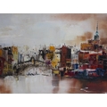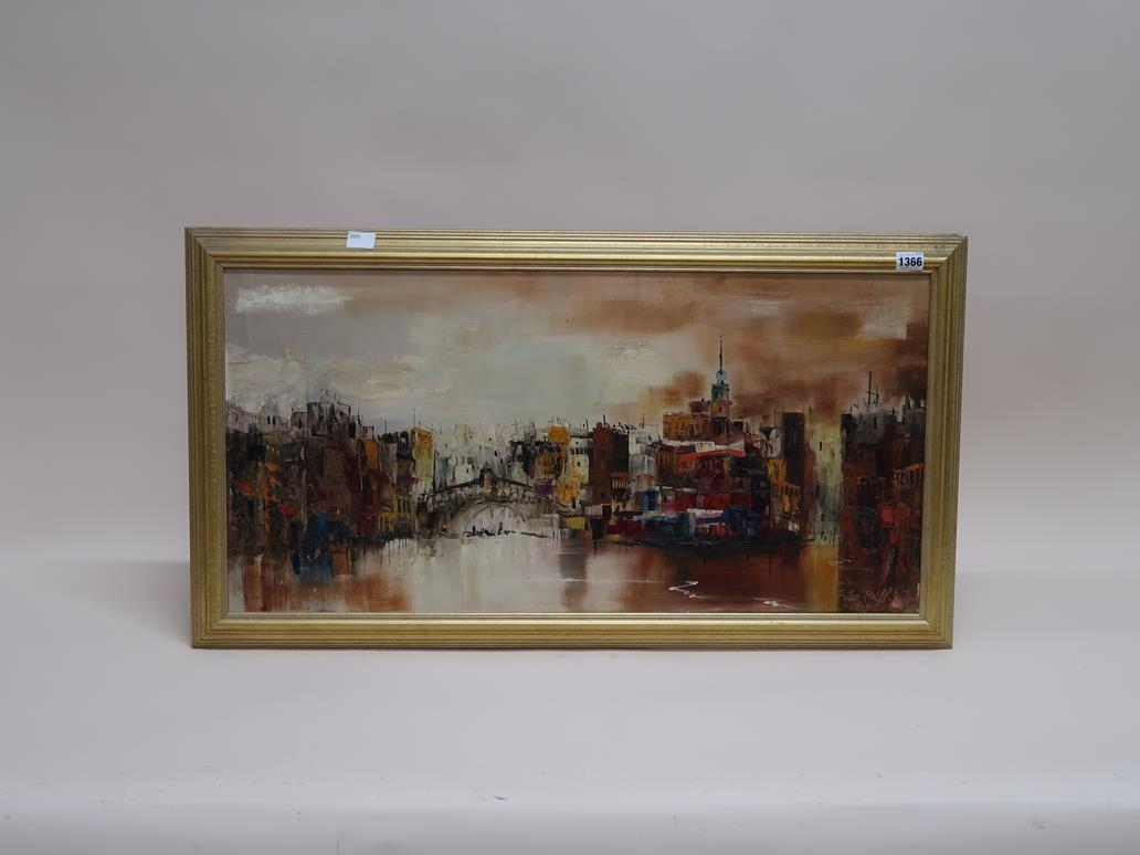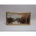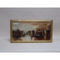 PETER ROLFF? - CITY RIVER, SIGNED OIL ON CANVAS, FRAMED, 40CM X 80CM