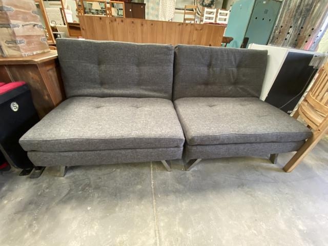 Grey upholstered 2 seater settee with chrome feet (converts to sofa bed) (175W cm) (NEW)
