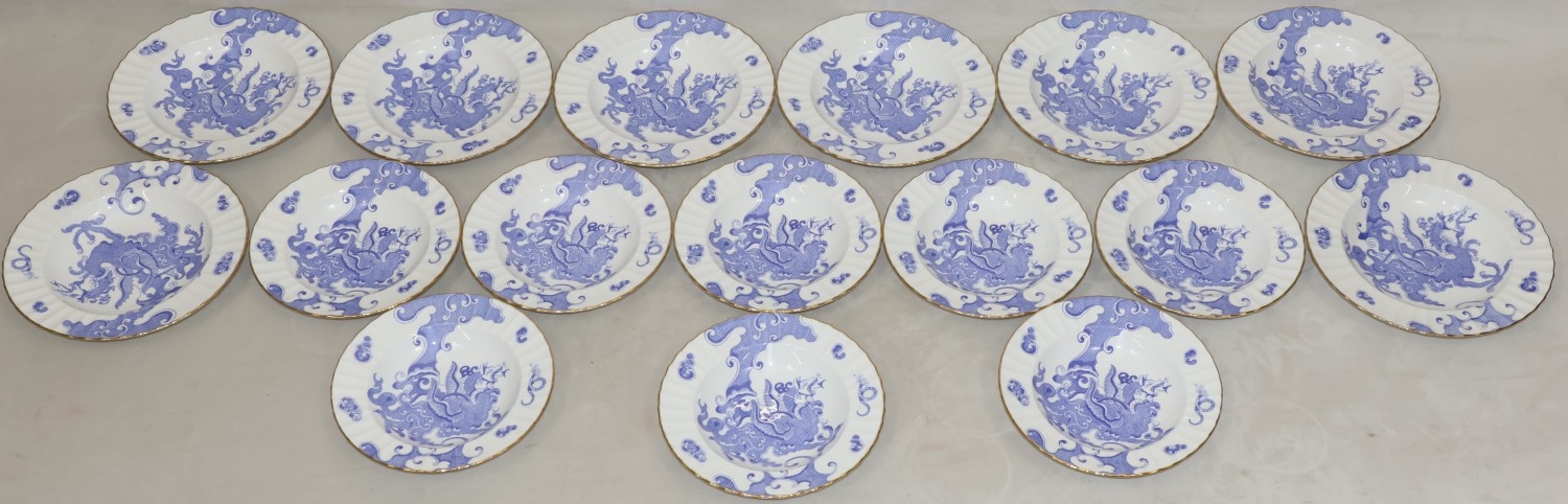A set of 8 Royal Worcester "Blue Dragon" pattern soup bowls and 8 matching smaller bowls (16)