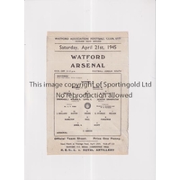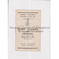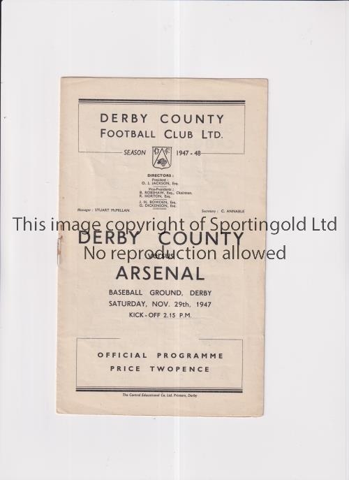 ARSENAL Programme for the away League match in their 1947/8 Championship season v Derby County 29/11/1947, very slightly creased. Generally good