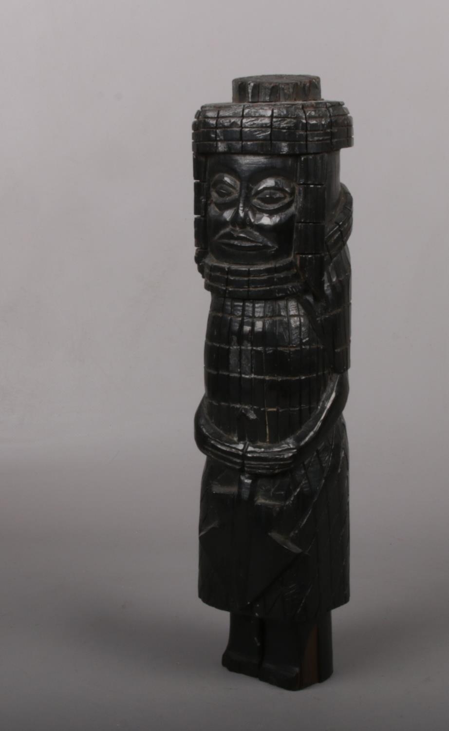 An African carved hardwood tribal statue, possibly ebony, 33cm.