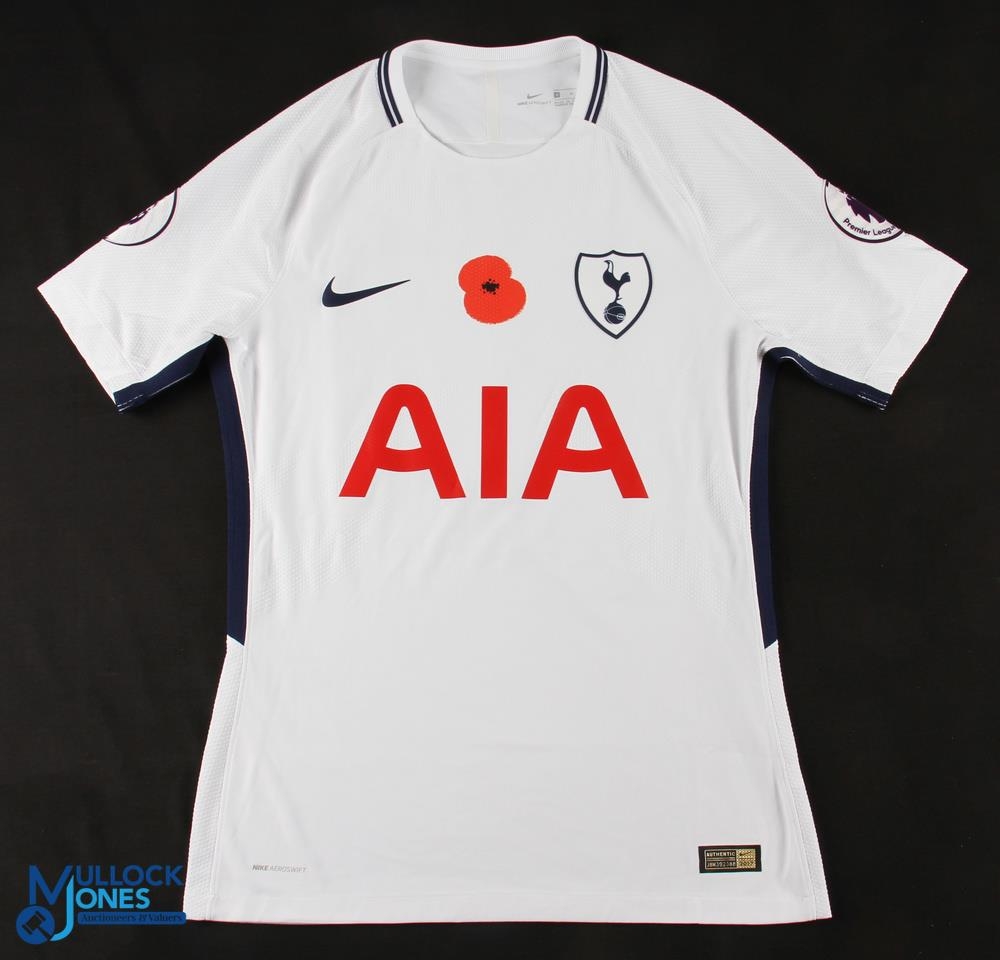 Dele Alli No 20 'Poppy' Tottenham Hotspur 2017/18 home match issue football shirt - Nike / AIA, Premier League sleeve badges, size M, short sleeve