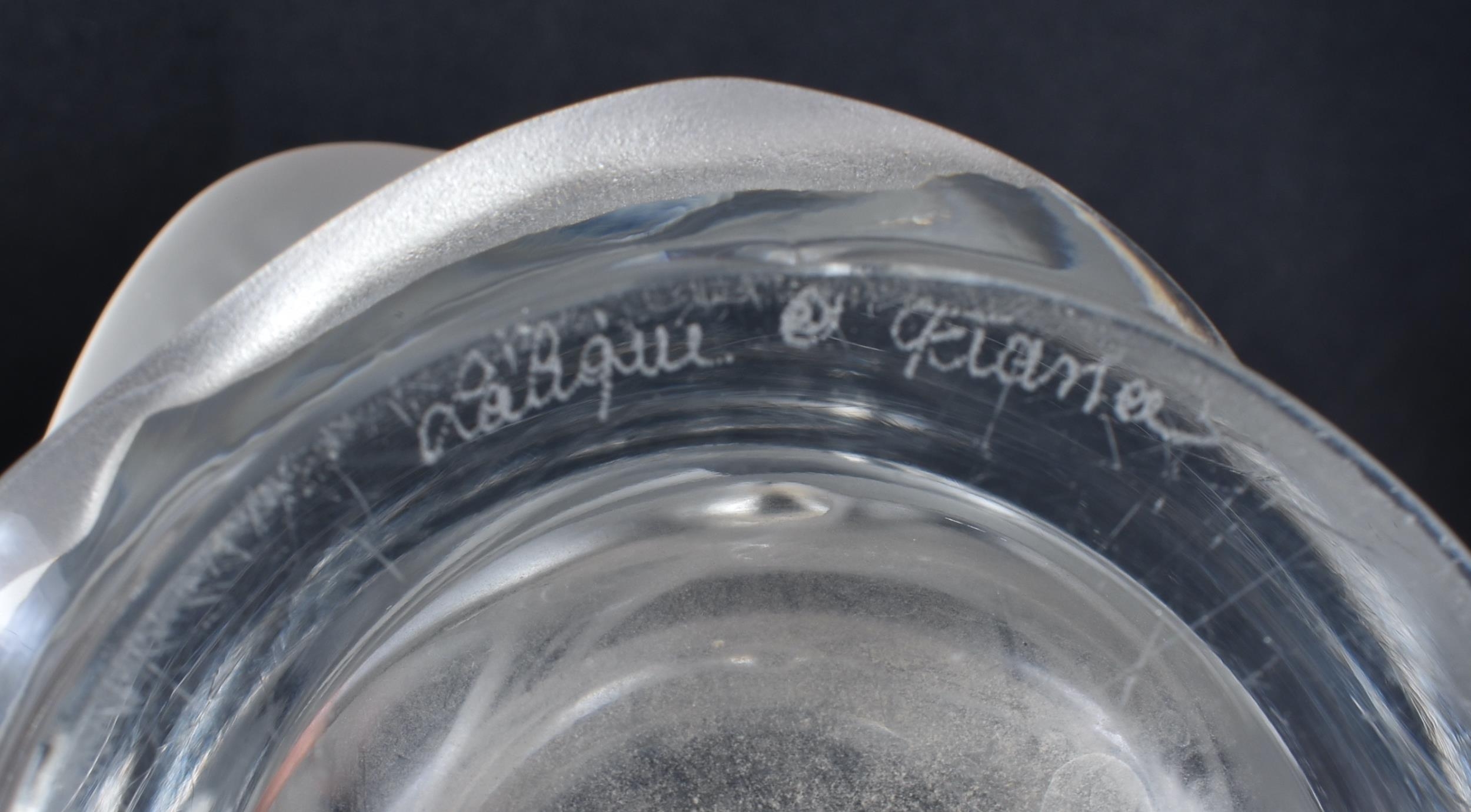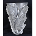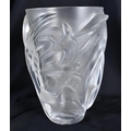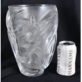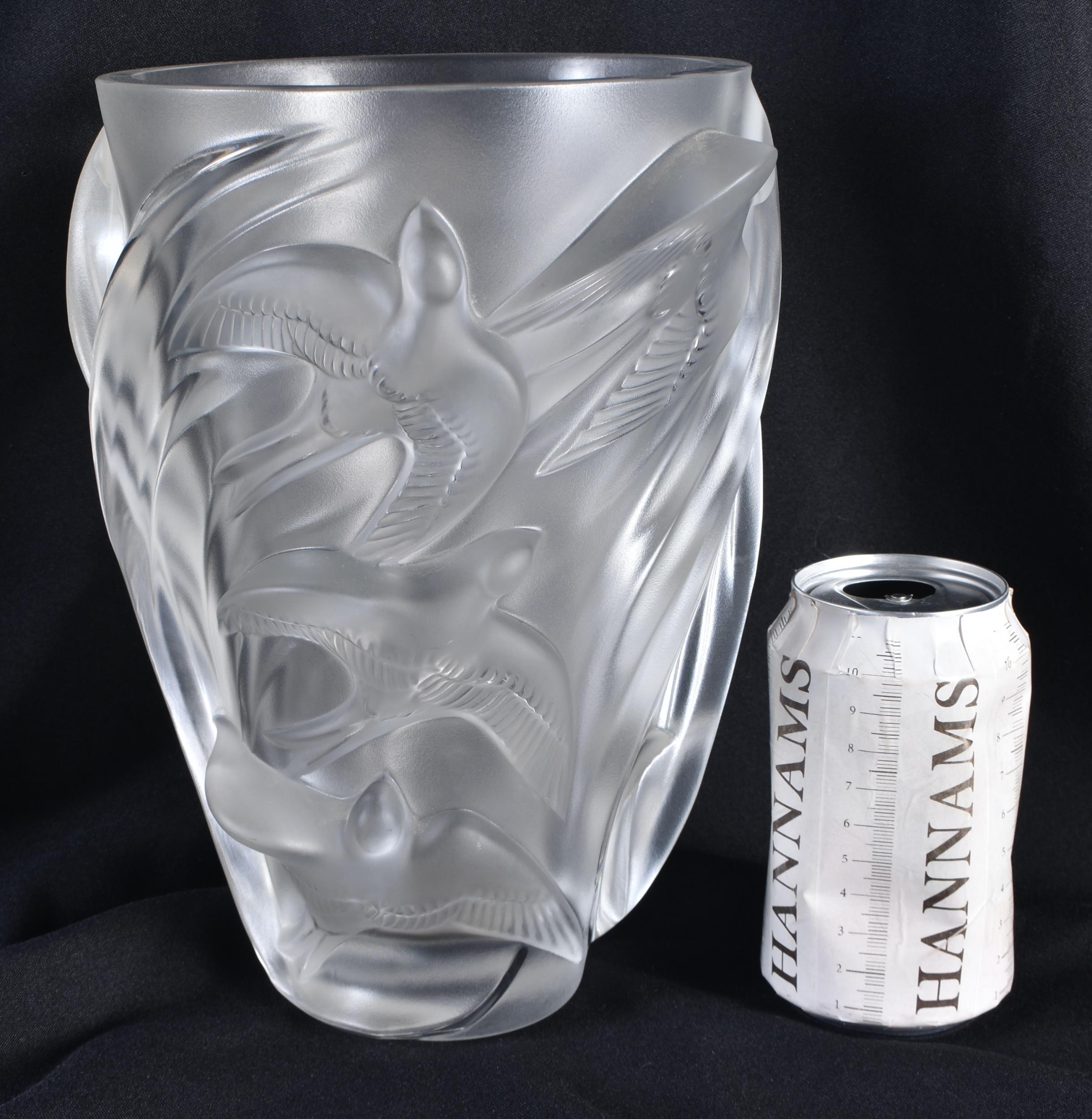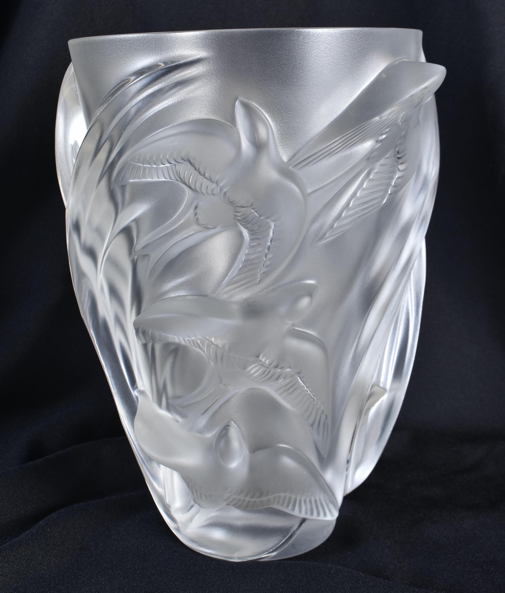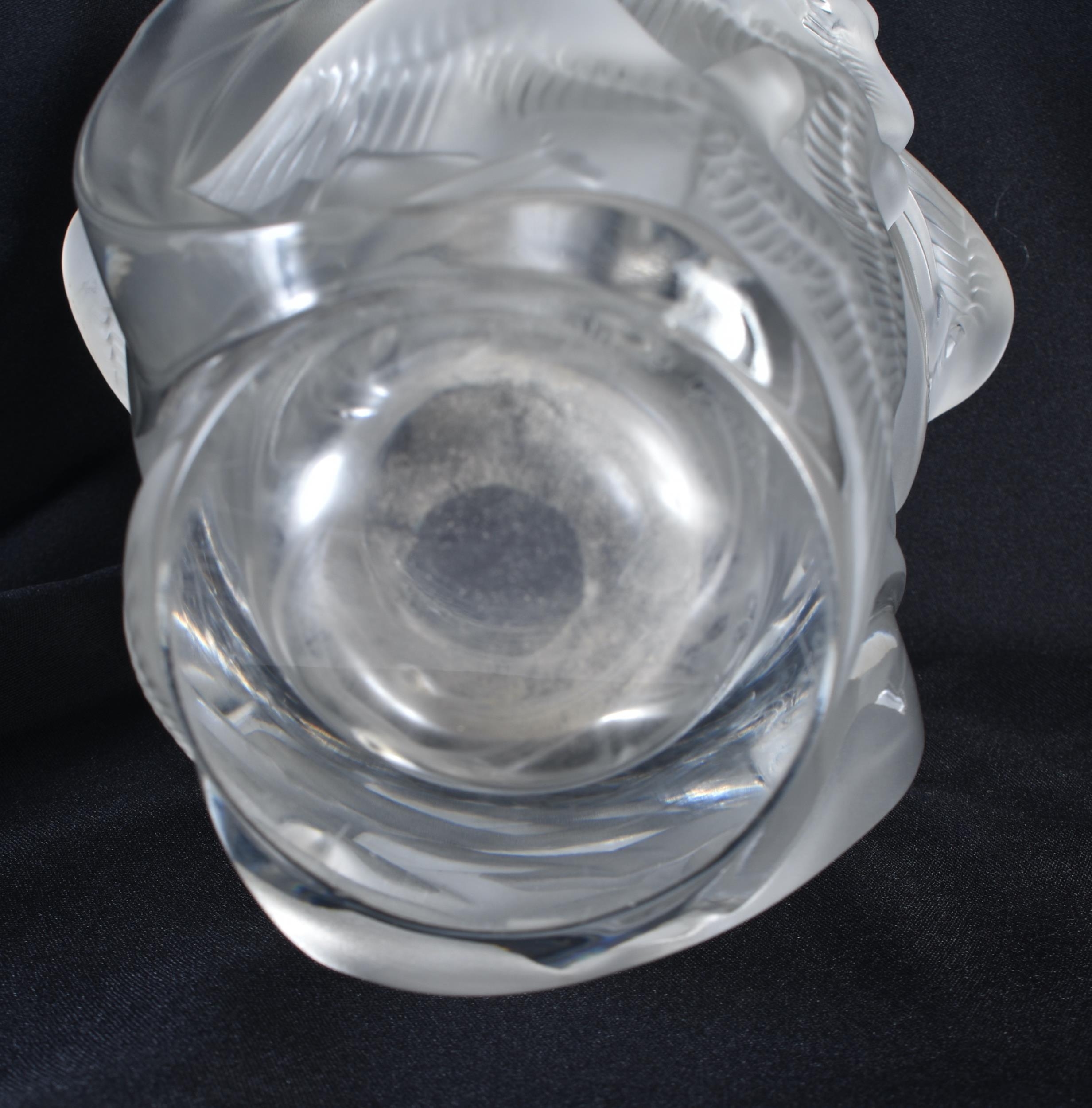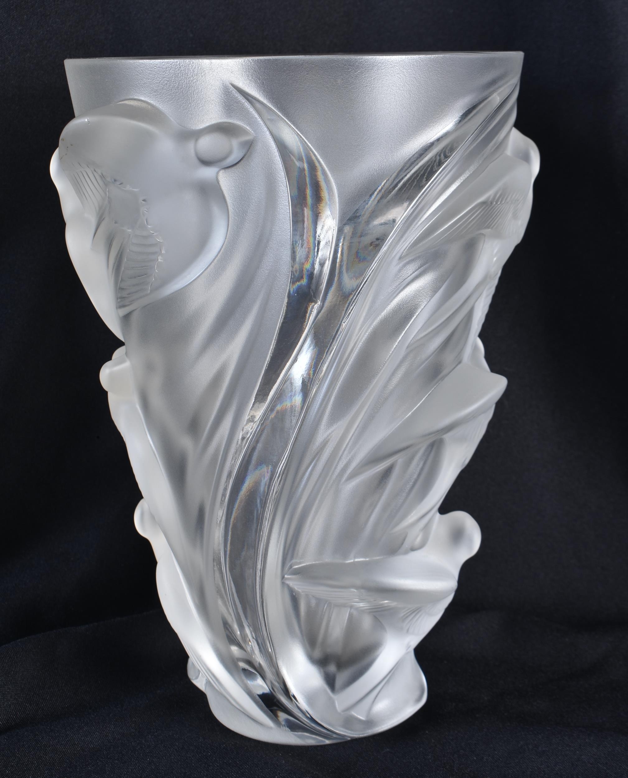 A LARGE FRENCH LALIQUE GLASS BIRD VASE. 25 cm x 15cm.
