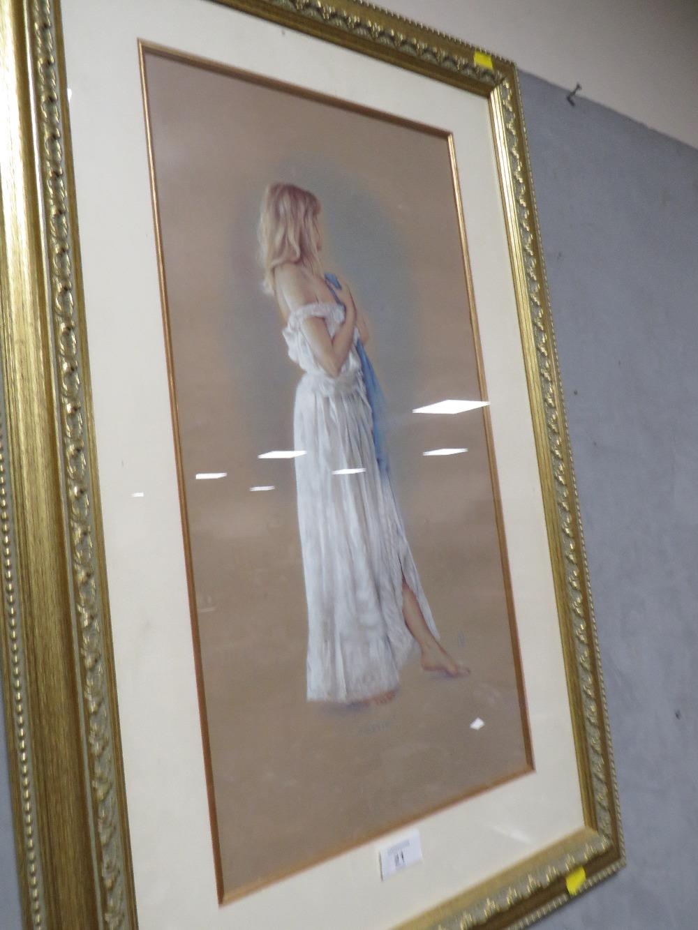 A GILT FRAMED AND GLAZED PRINT OF A LADY ENTITLED SUZETTE