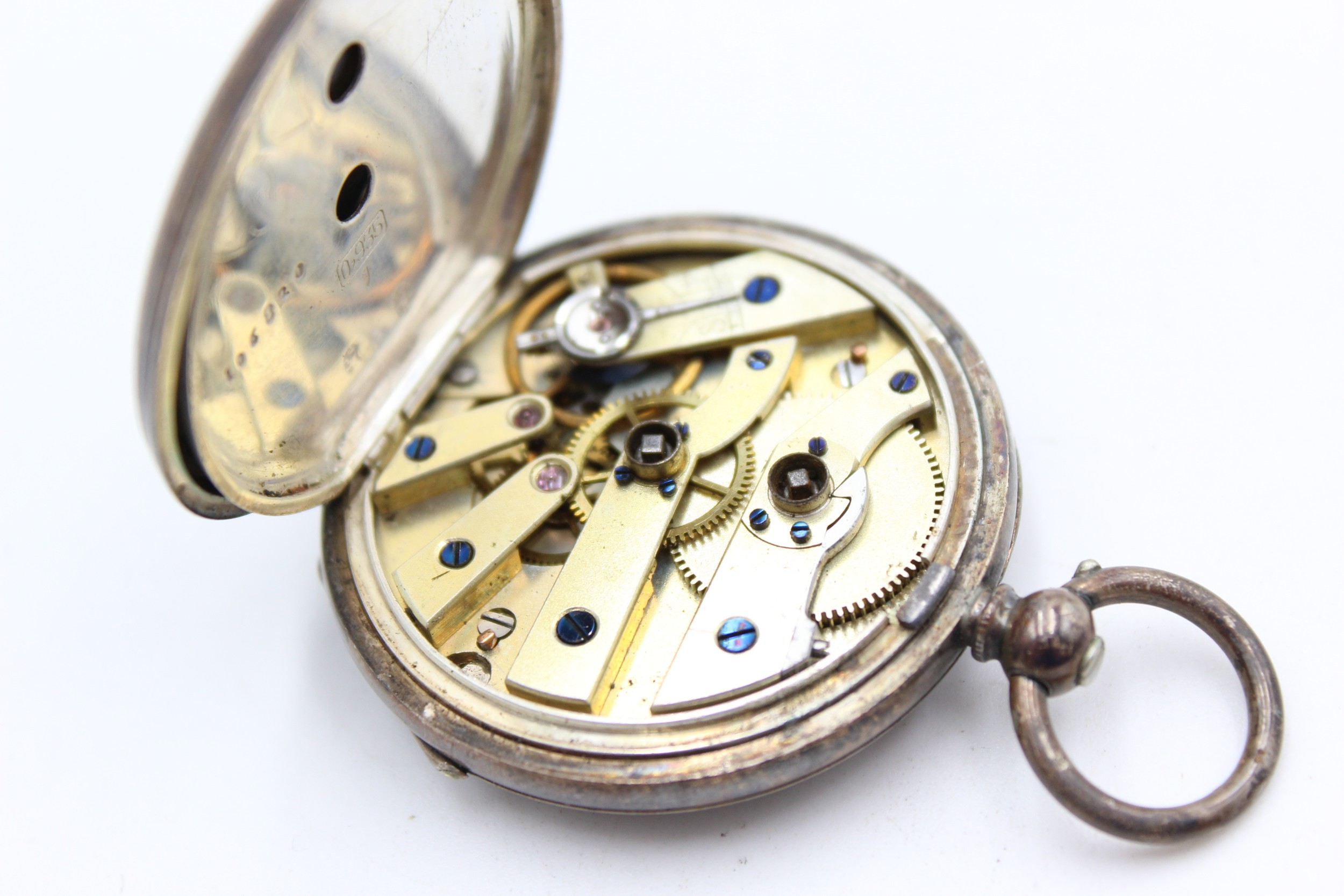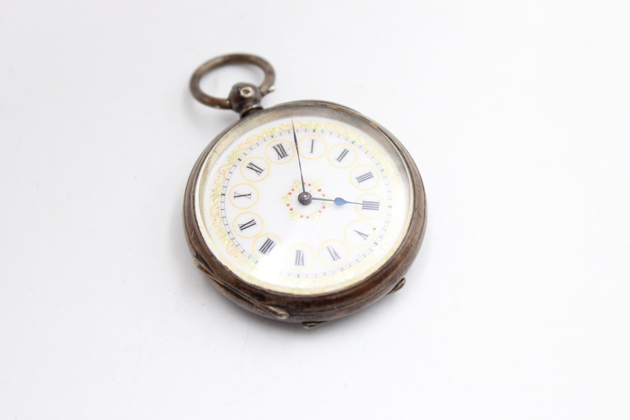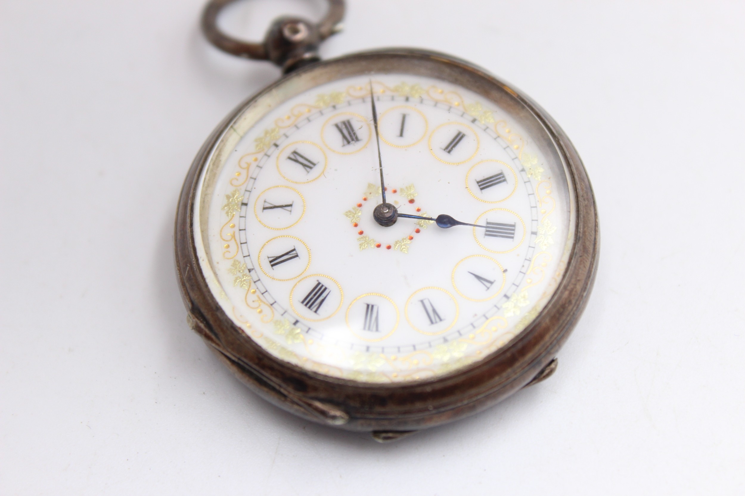 Vintage Ladies .935 SILVER Cased FOB WATCH Key-Wind WORKING (48g)