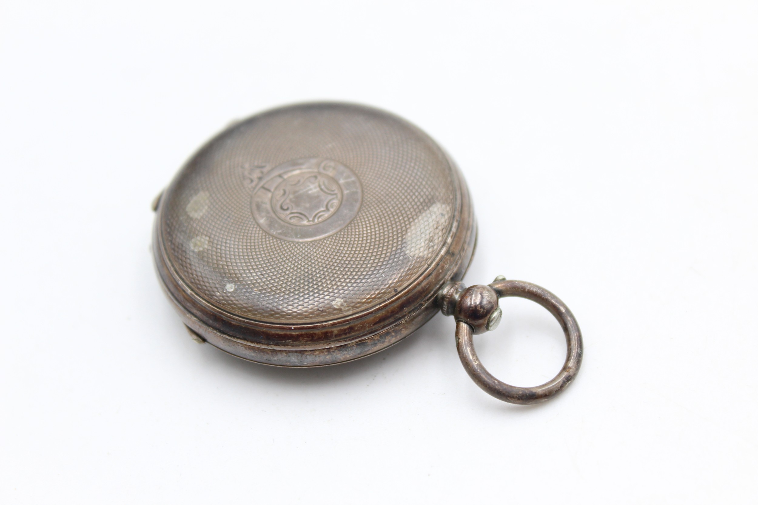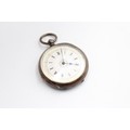 Vintage Ladies .935 SILVER Cased FOB WATCH Key-Wind WORKING w/ Gilded White Enamel Dial, Black Painted Roman Numerals, Engine Turned Engraved Caseback Code on Case - 106820 No Code on Movement Dimensions - 4.2cm x 4cm Item is in vintage condition Signs of age & use Please see photographs