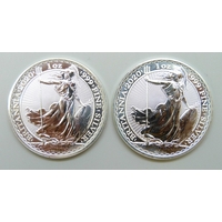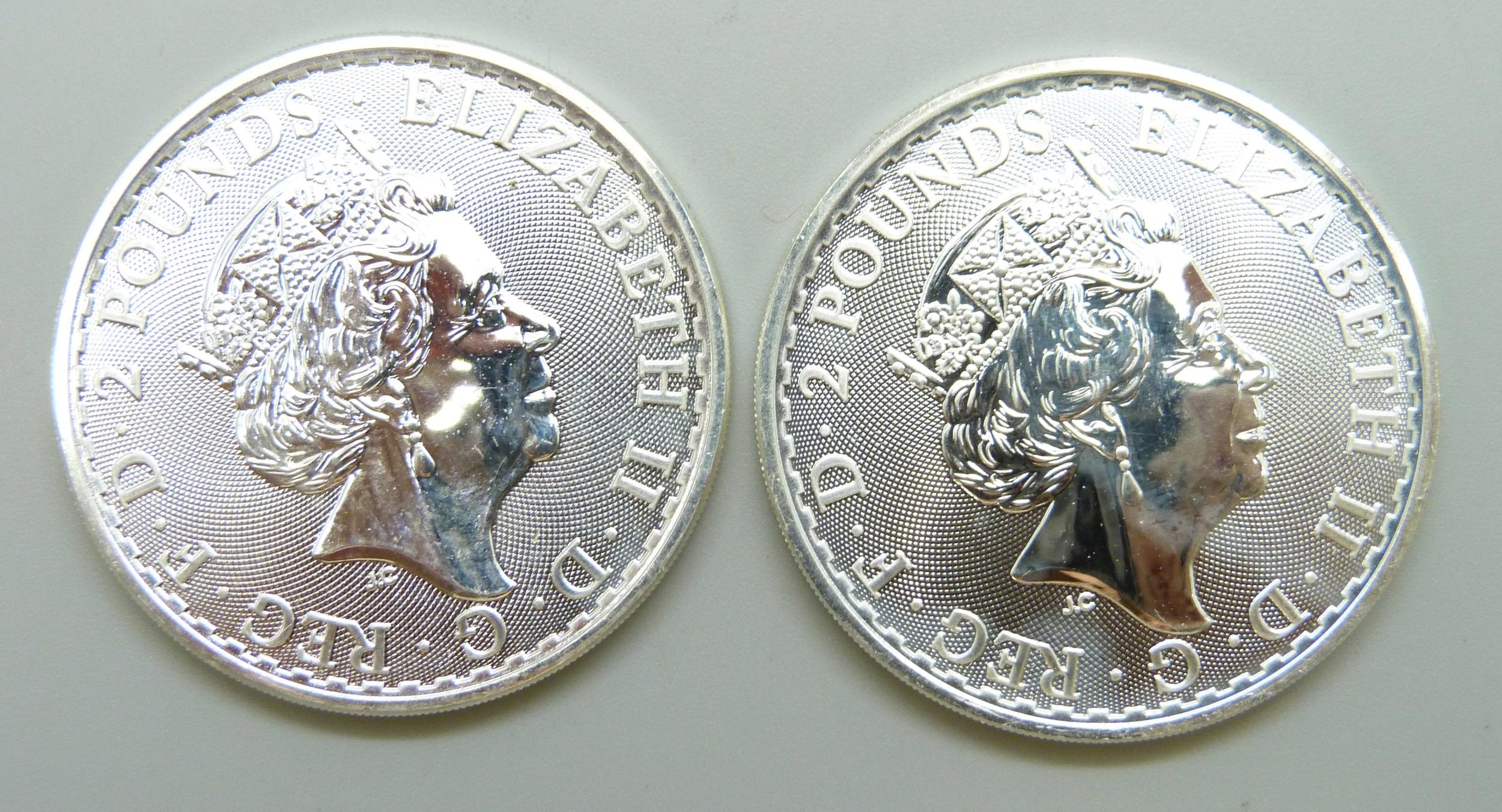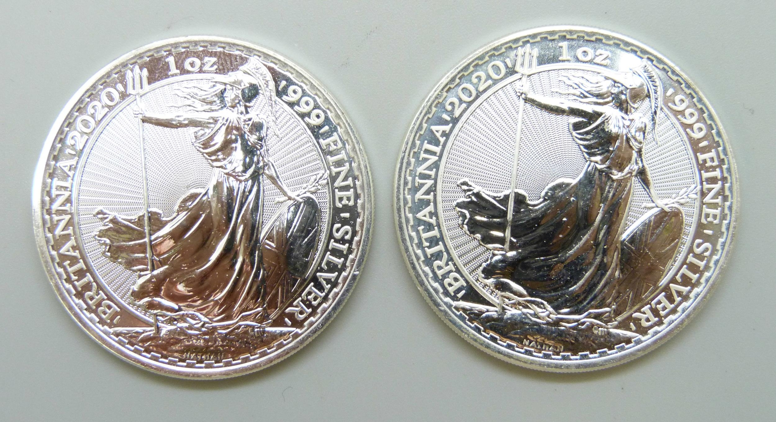 Two 2020 Britannia 1oz .999 fine silver £2 coins