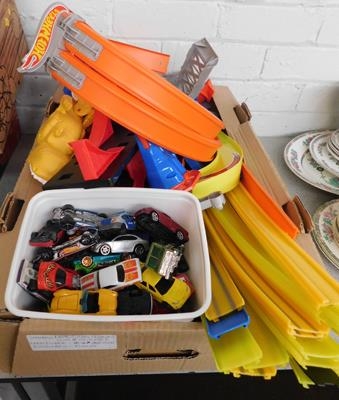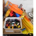 Large assortment of Hotwheels track, launchers, loops & assortment of cars