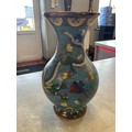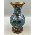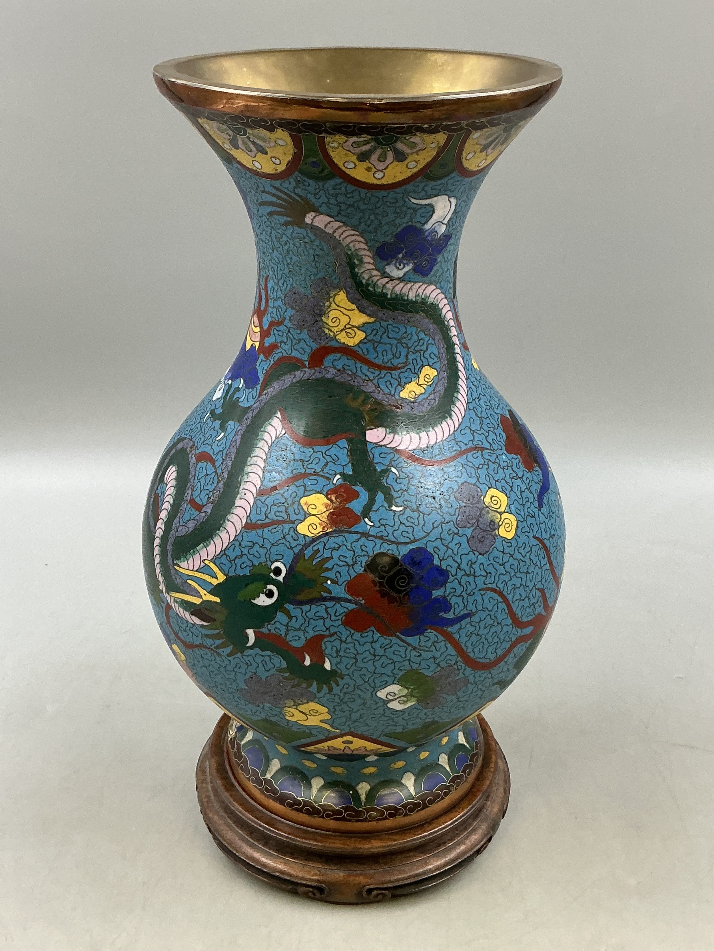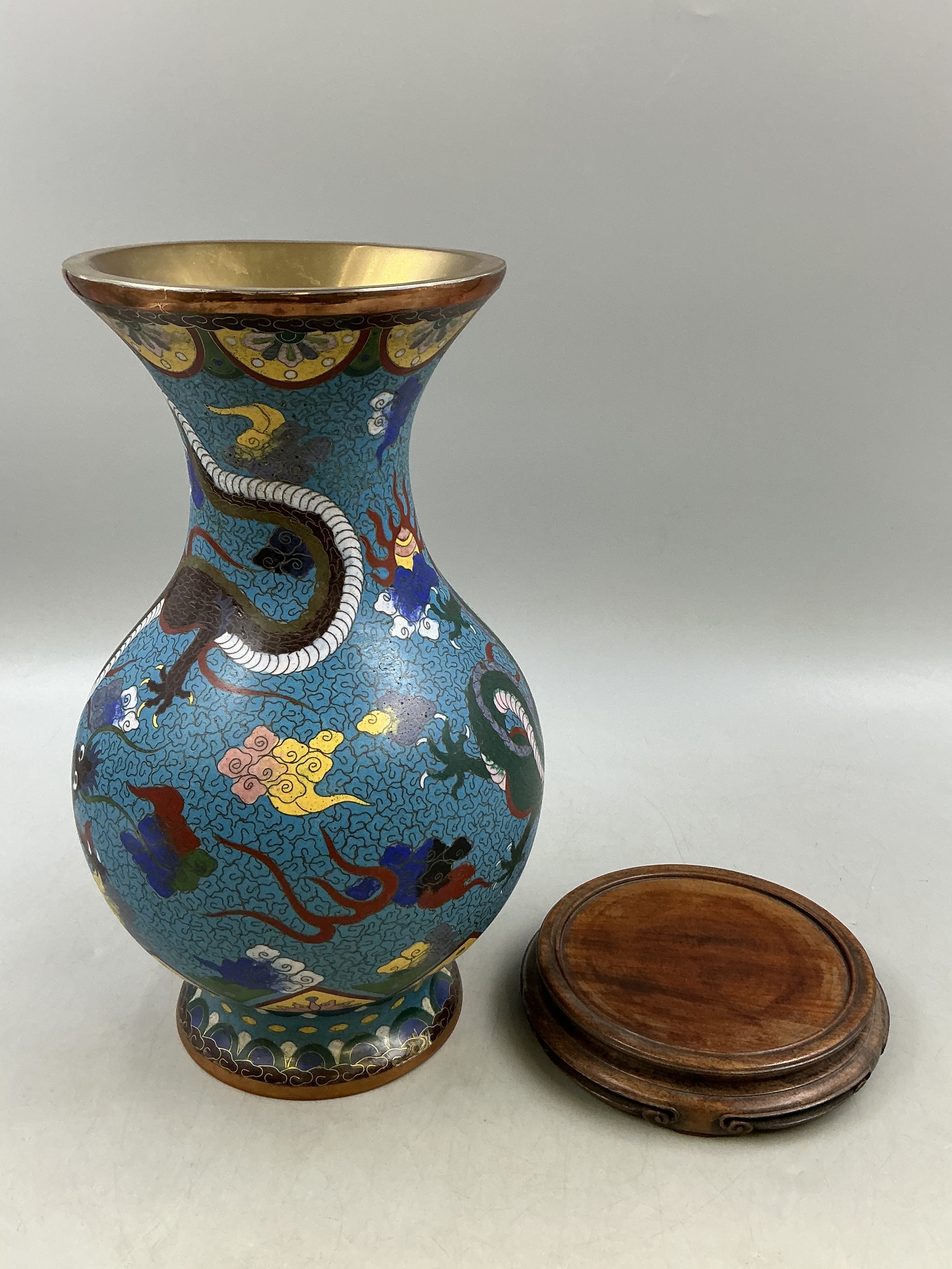 Large Hand Painted Chinese Dragon Cloisonne Vase on wooden plinth 34cm