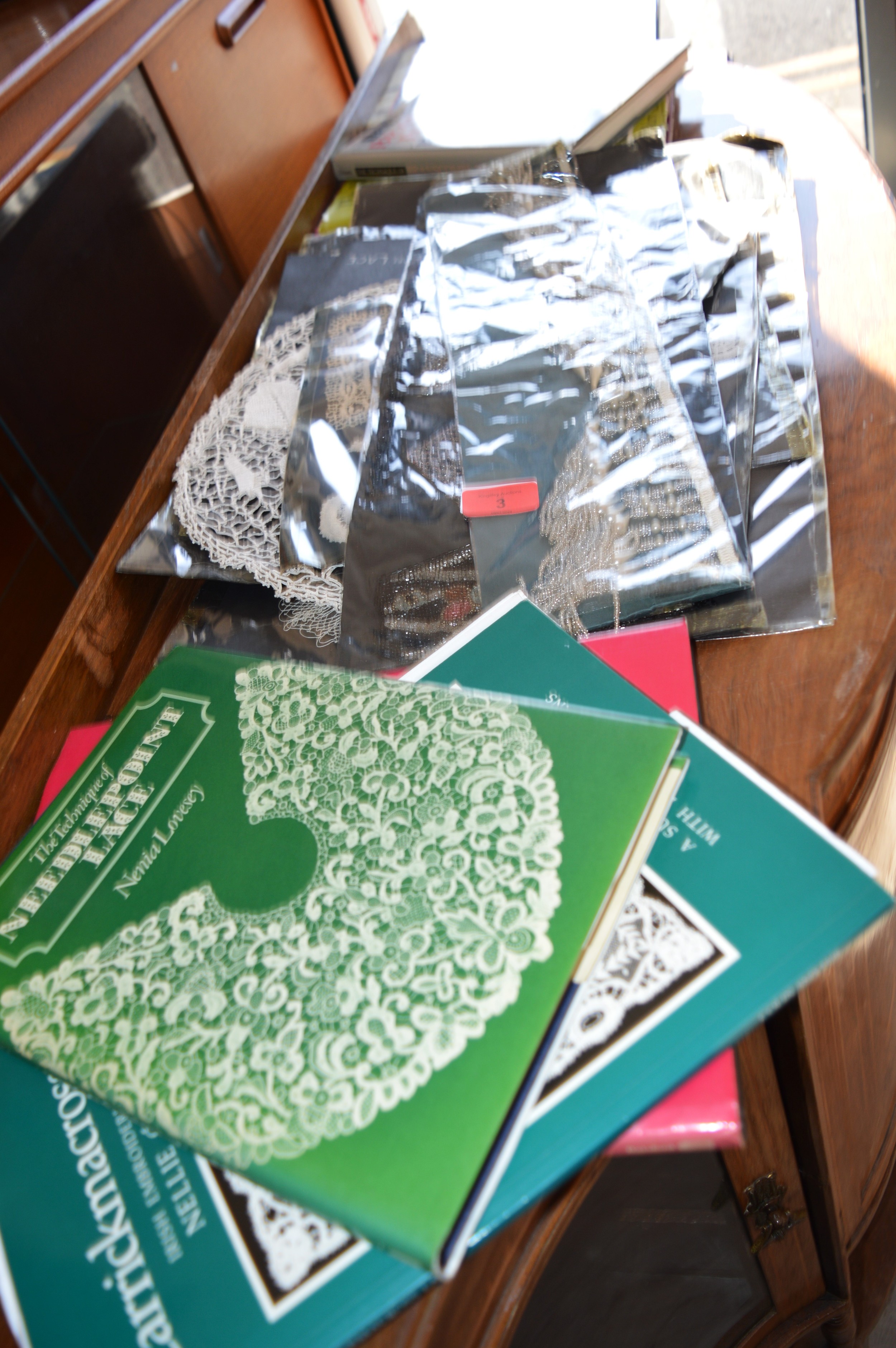 Collection of Professionally Crafted Doylies and Samples in Torchon Lace, Maltese Lace, Bedfordshire, Brussels and Honiton Lace, Plus Metal-Worked Lace, Plus Five Hardback Books (and One Softback) on Lace Working: The Technique of Needlepoint Lace, The Romance of Lace, Royal Honiton Lace, etc