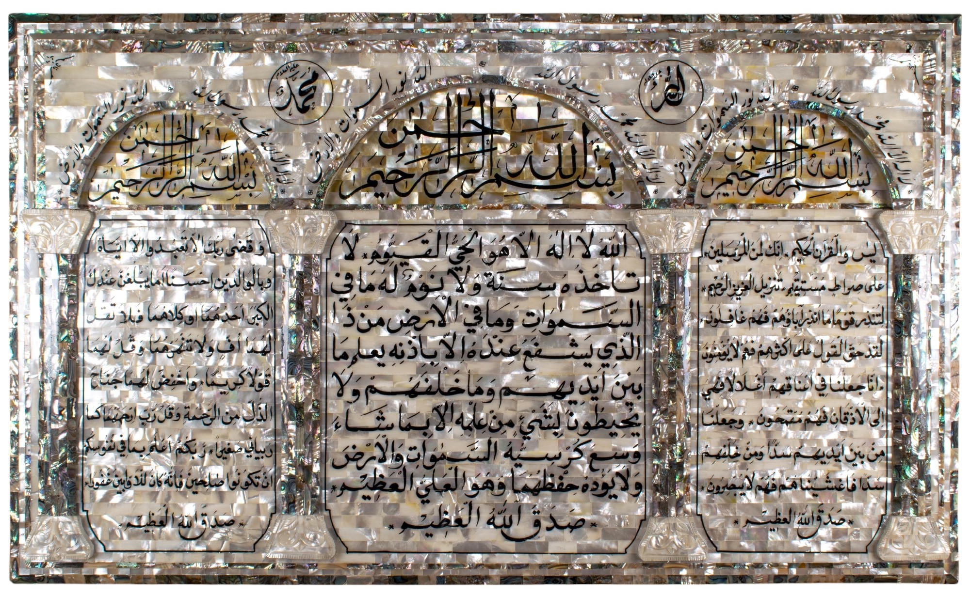 A large Ayatul Kursi in three arched sections