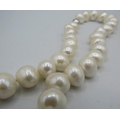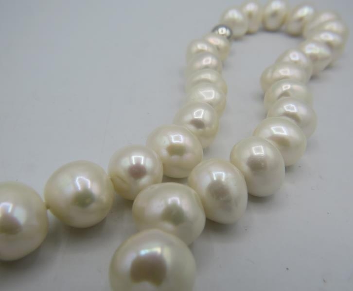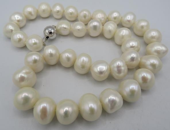 A string of white freshwater cultured pearls, 18" length approx, with 9ct white gold ball clasp.