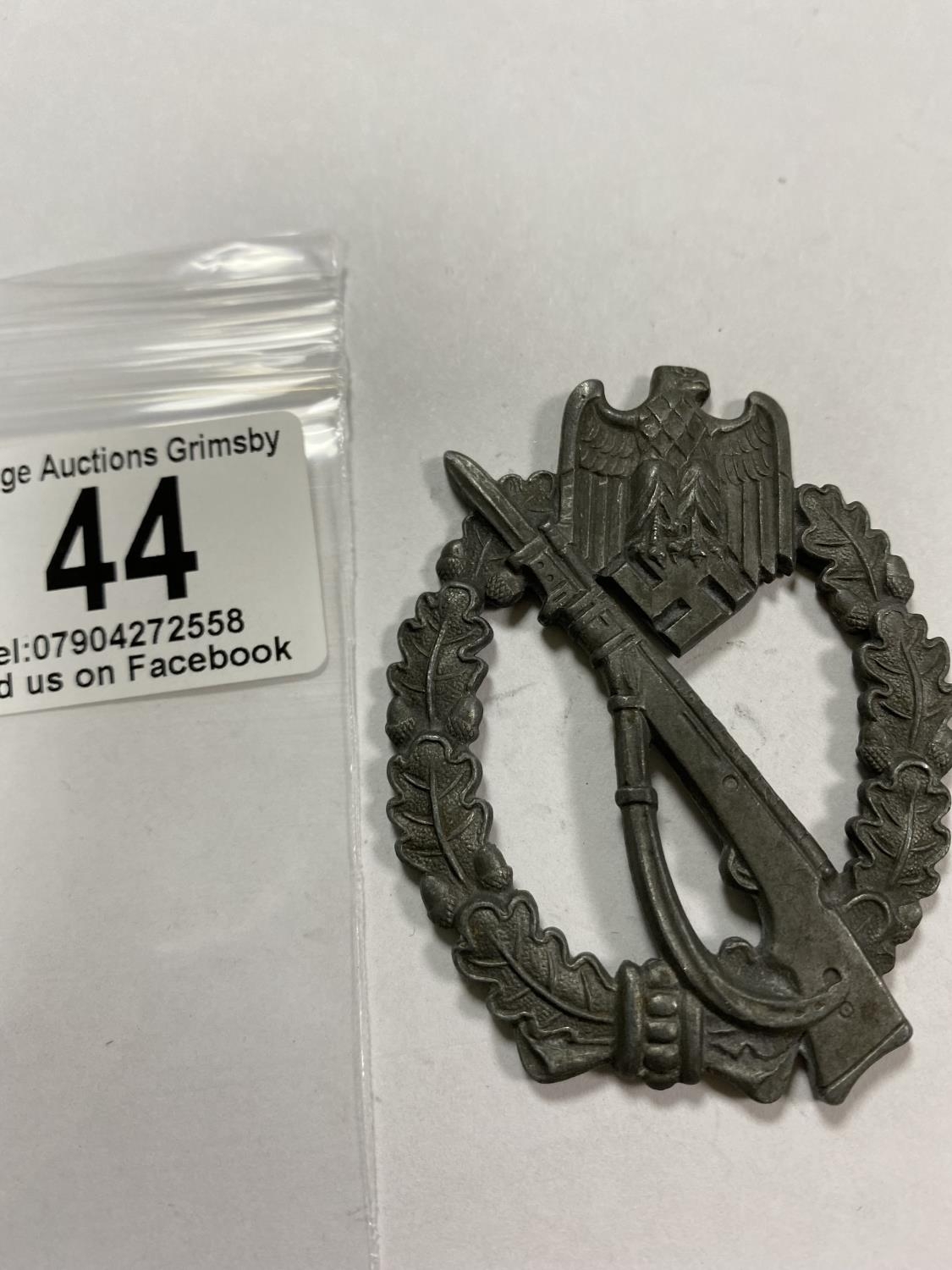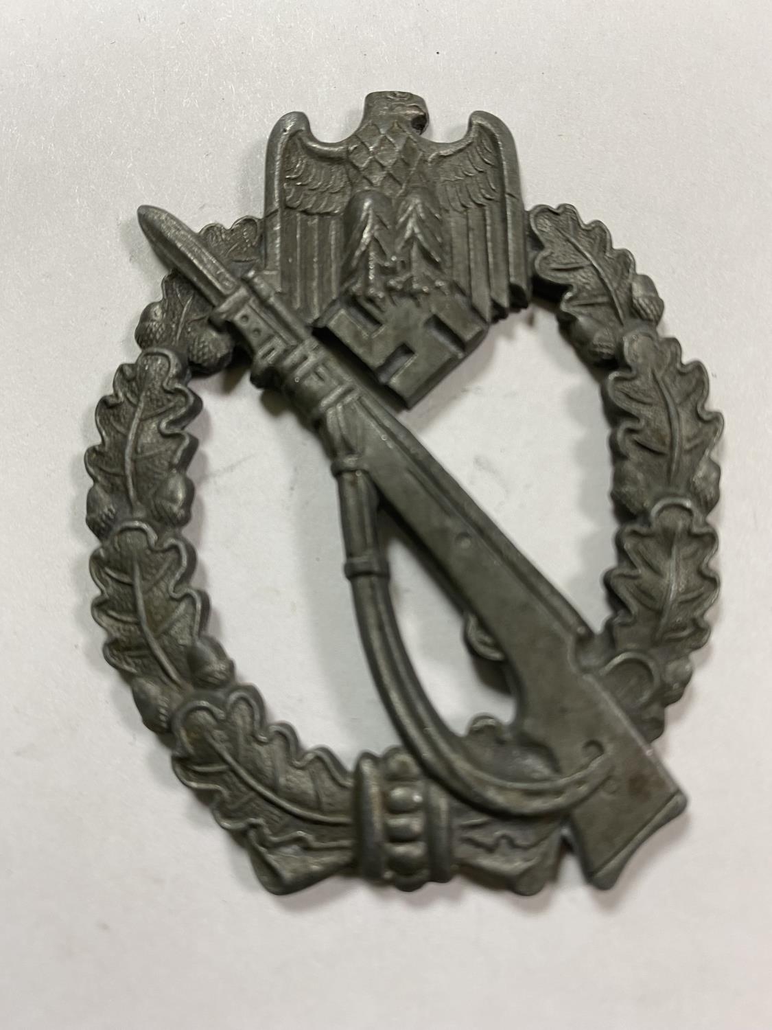 WW2 INFANTRY ASSAULT BADGE WITH F25 ON THE BACK