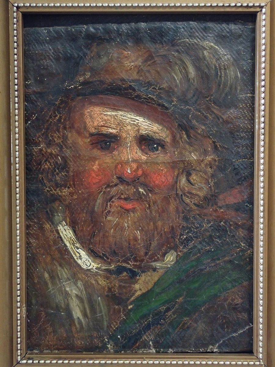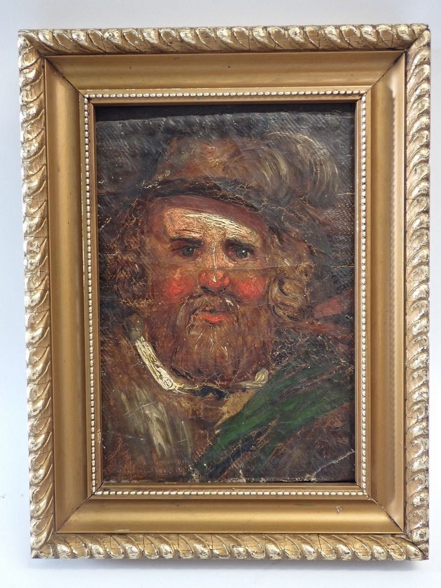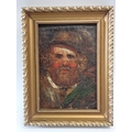 A 19th century Scottish school portrait - oil on canvas of a highlander with ruddy cheeks, unsigned, 18 x 12.5cm