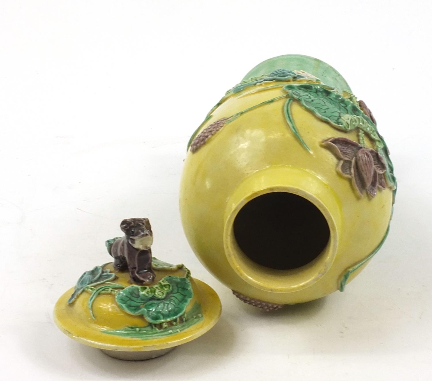 The top of the vase has been restored, there is a small minor chip to the knop on the lid.