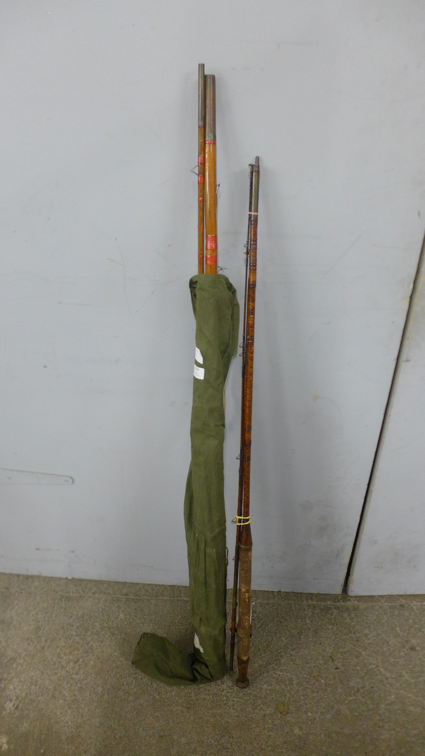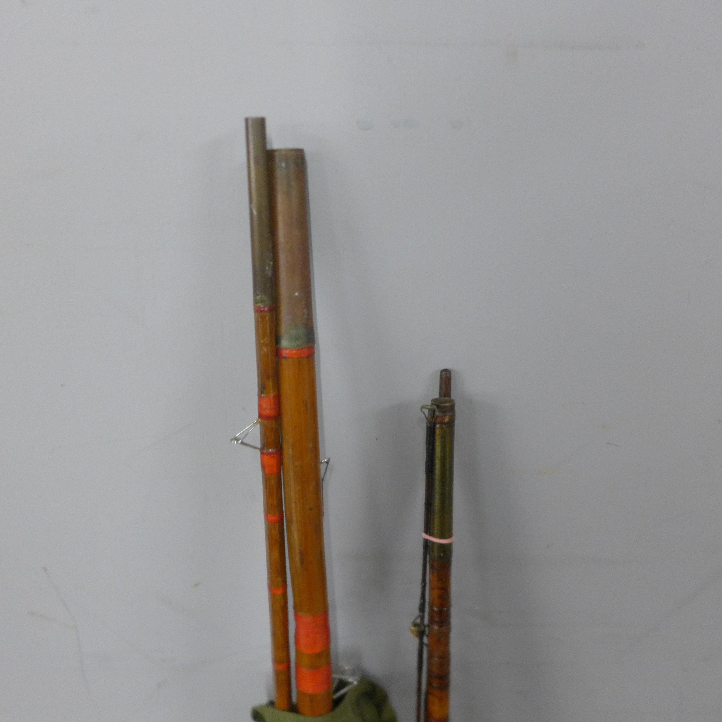 Two fishing rods (one 3 piece) and a reel