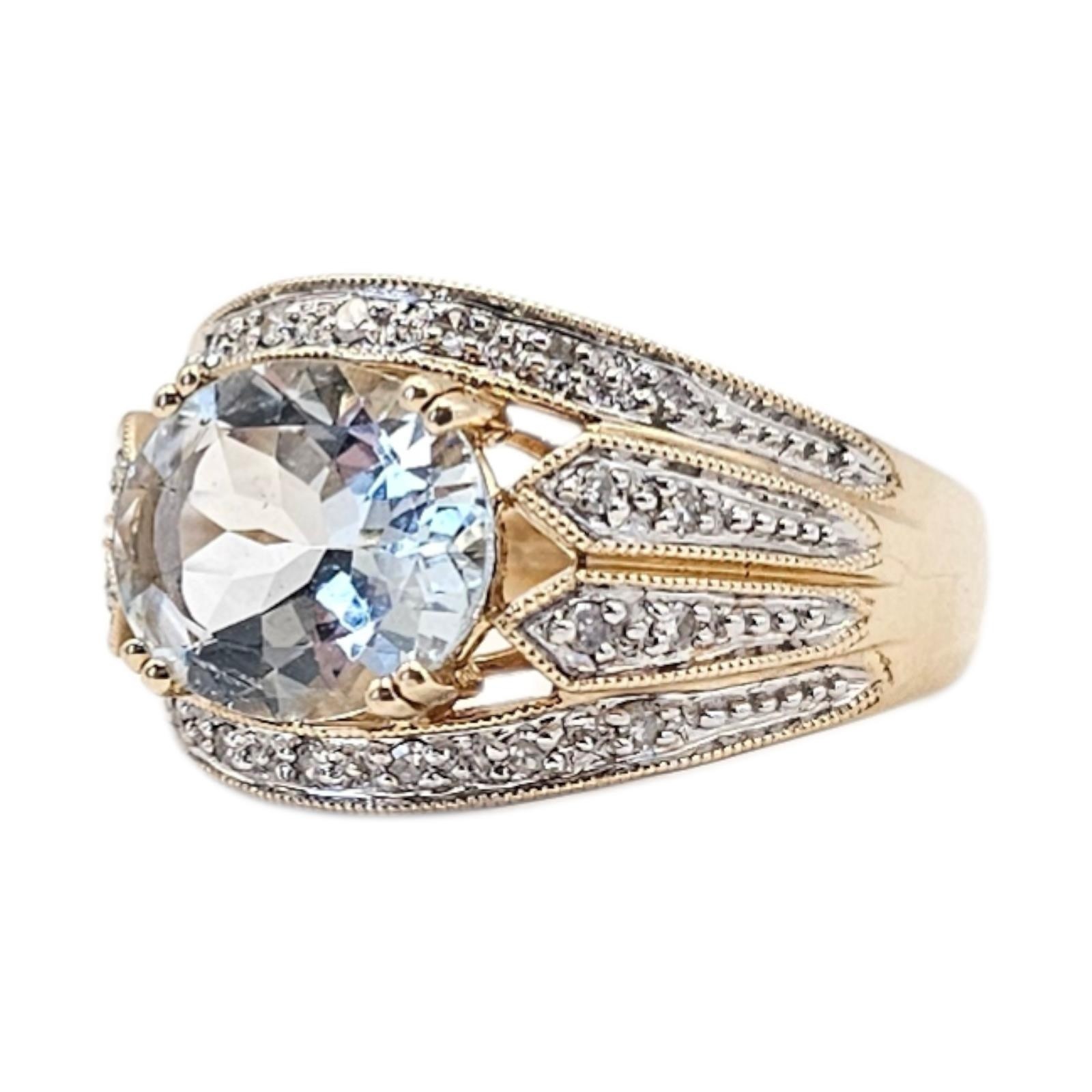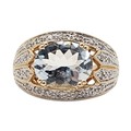 A 14CT GOLD, AQUAMARINE AND DIAMOND CLUSTER RING