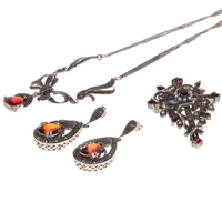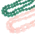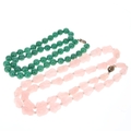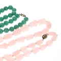 Chinese Export Rose Quartz and Aventurine Silver Clasped Necklace Pair, 242g