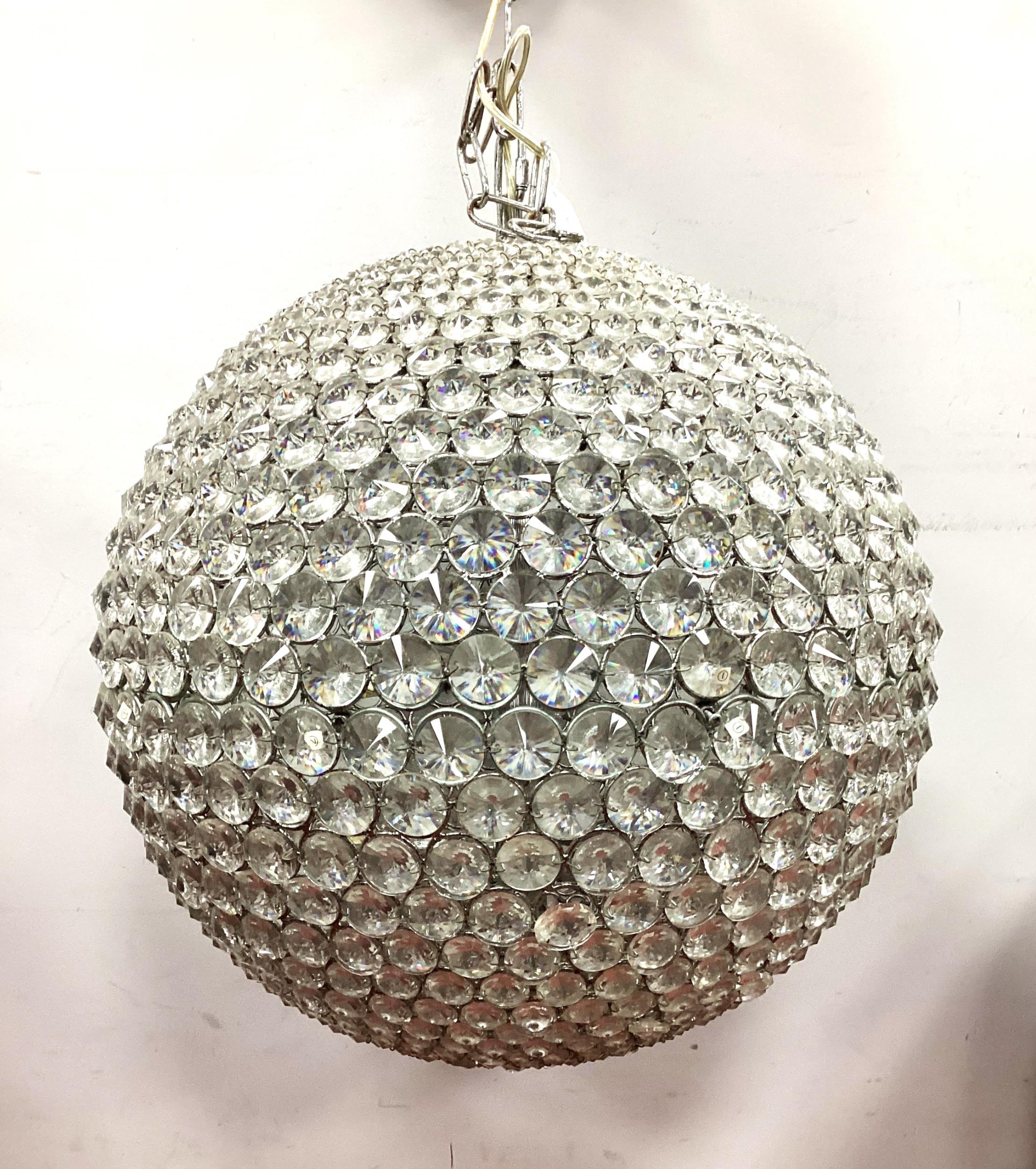 Disco Ball/Light Fitting circa 1980s, with faceted glass panels of varying size, approximately 80cm diameter, very heavy, originally from a nightclub in Sheffield.