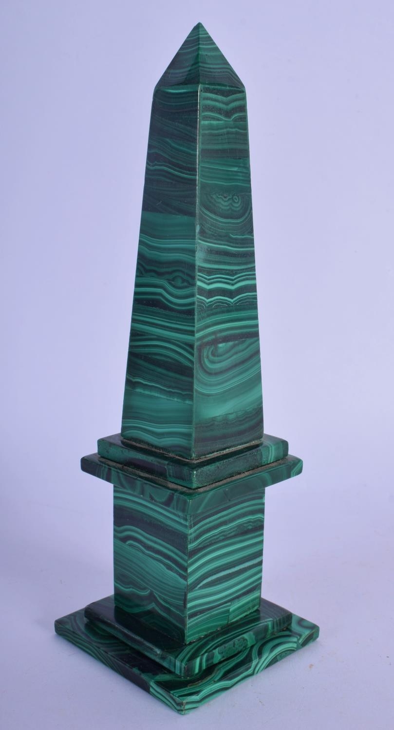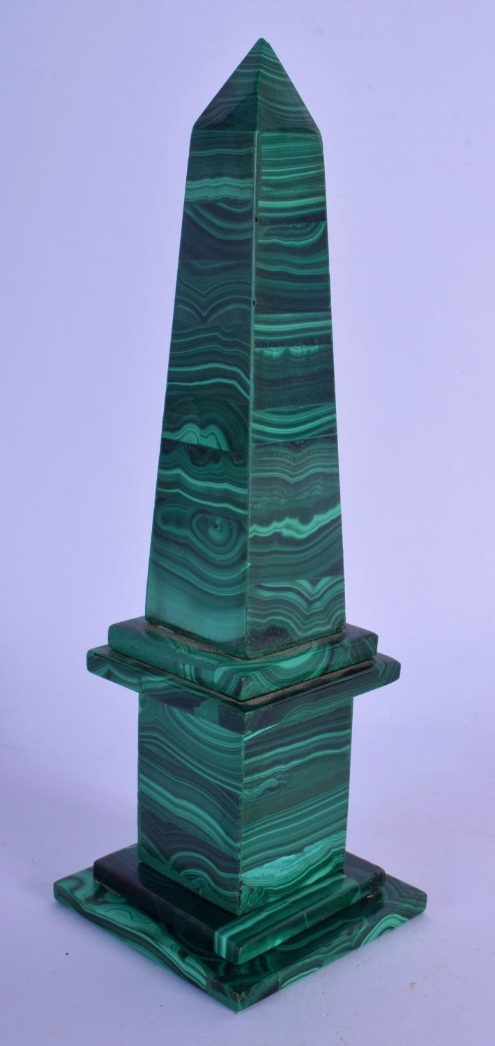 AN ANTIQUE MALACHITE OBELISK. 16 cm high.