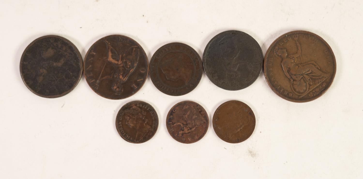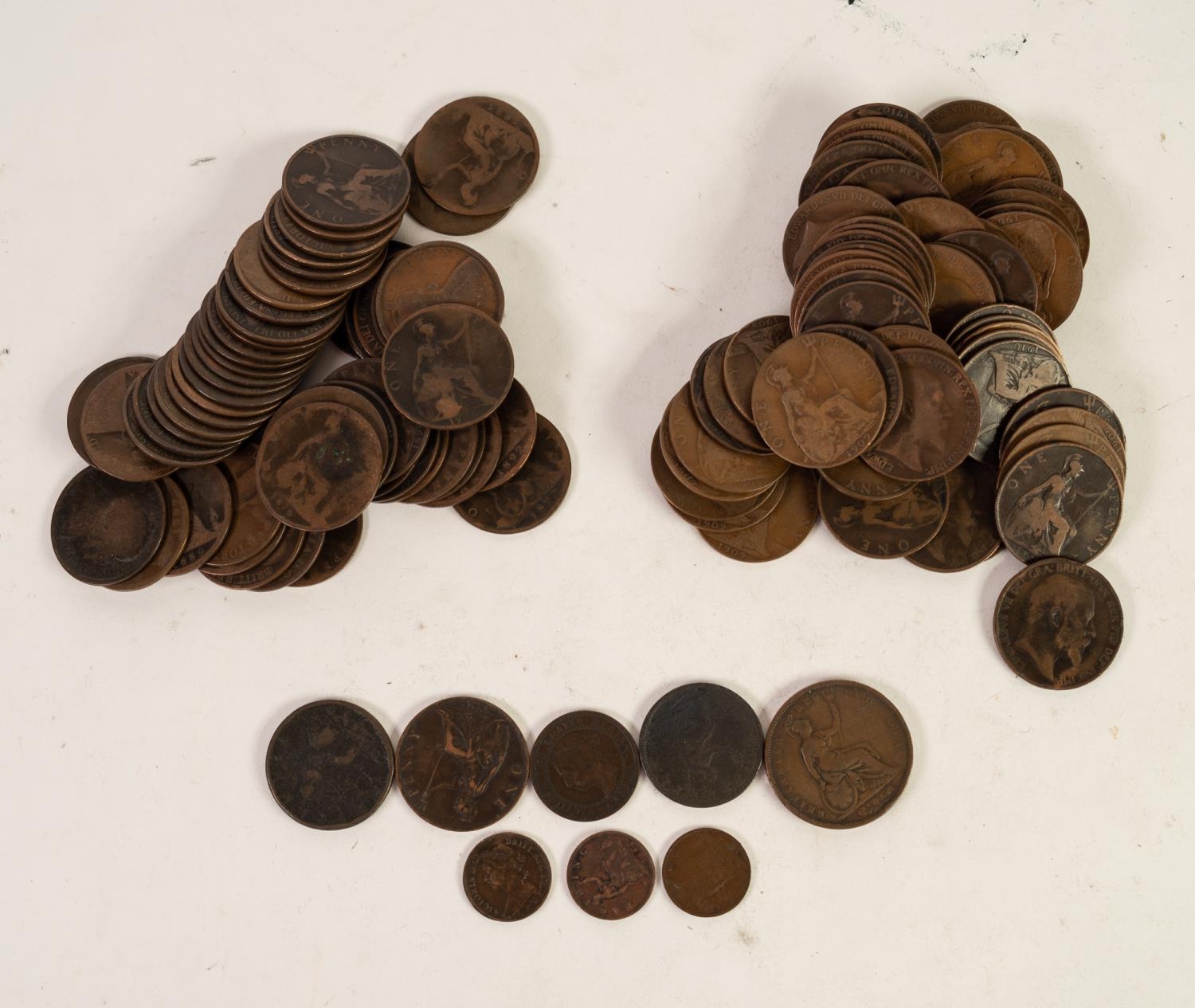 SELECTION OF EARLY NINETEENTH CENTURY TO EARLY TWENTIETH CENTURY G.B. COPPER COINS mainly pennies to include; Victoria (Canadian) half penny 1901 (VF), Farthing 1887 (VF), Penny 1901 (VF), TOGETHER WITH APPROX 53 VICTORIAN PENNIES mainly worn and 57 Edward VII copper pennies, all showing degrees of wear, approx 118 coins in total