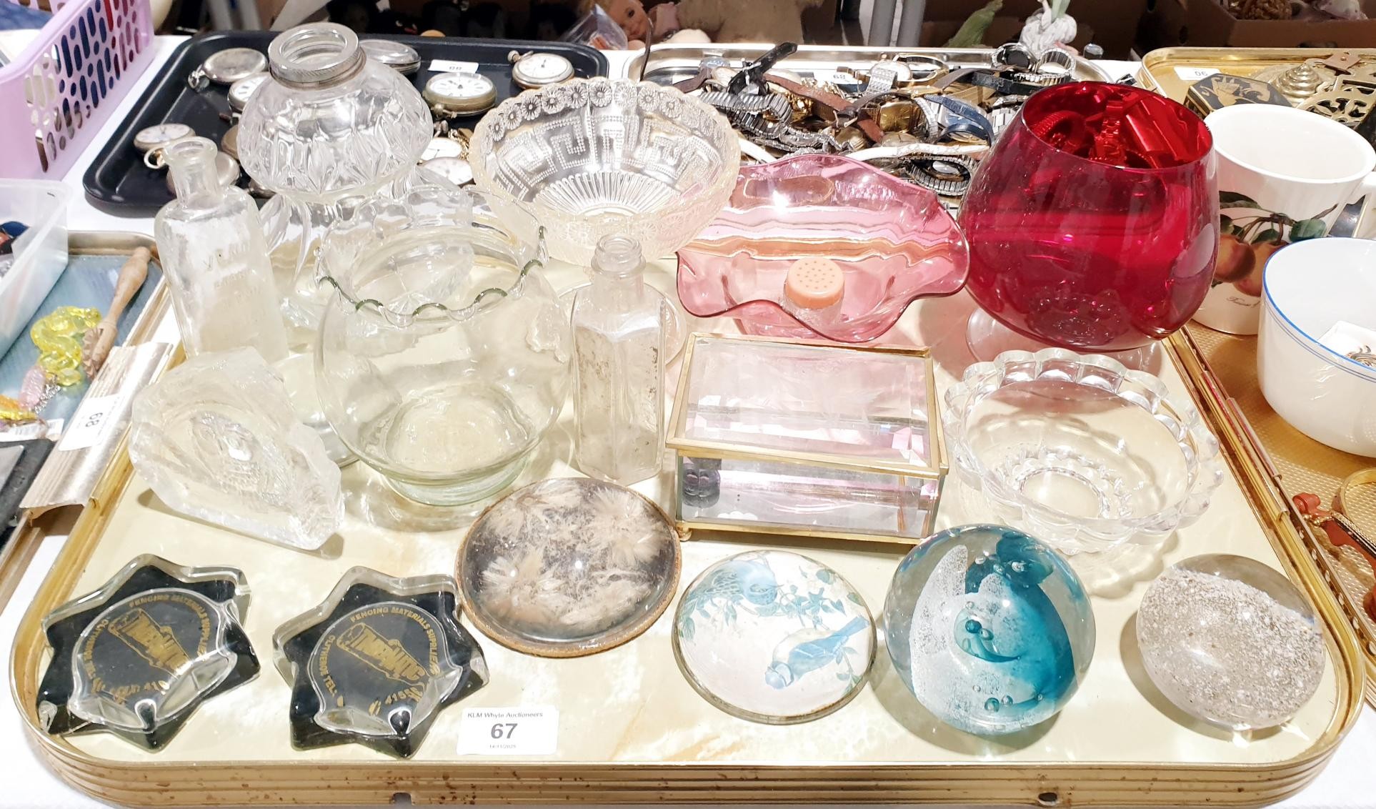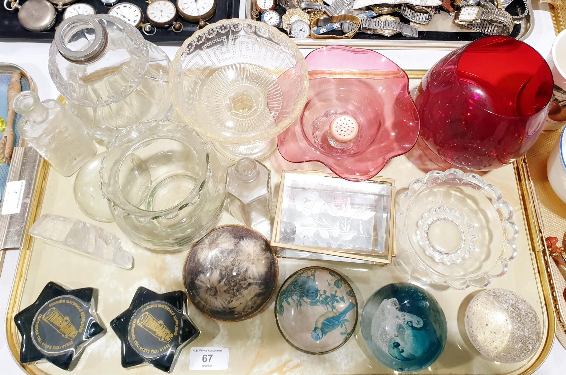 A tray of assorted including paper weights. No Shipping. Arrange collection or your own packer and shipper, please. Electricals are sold as scrap.