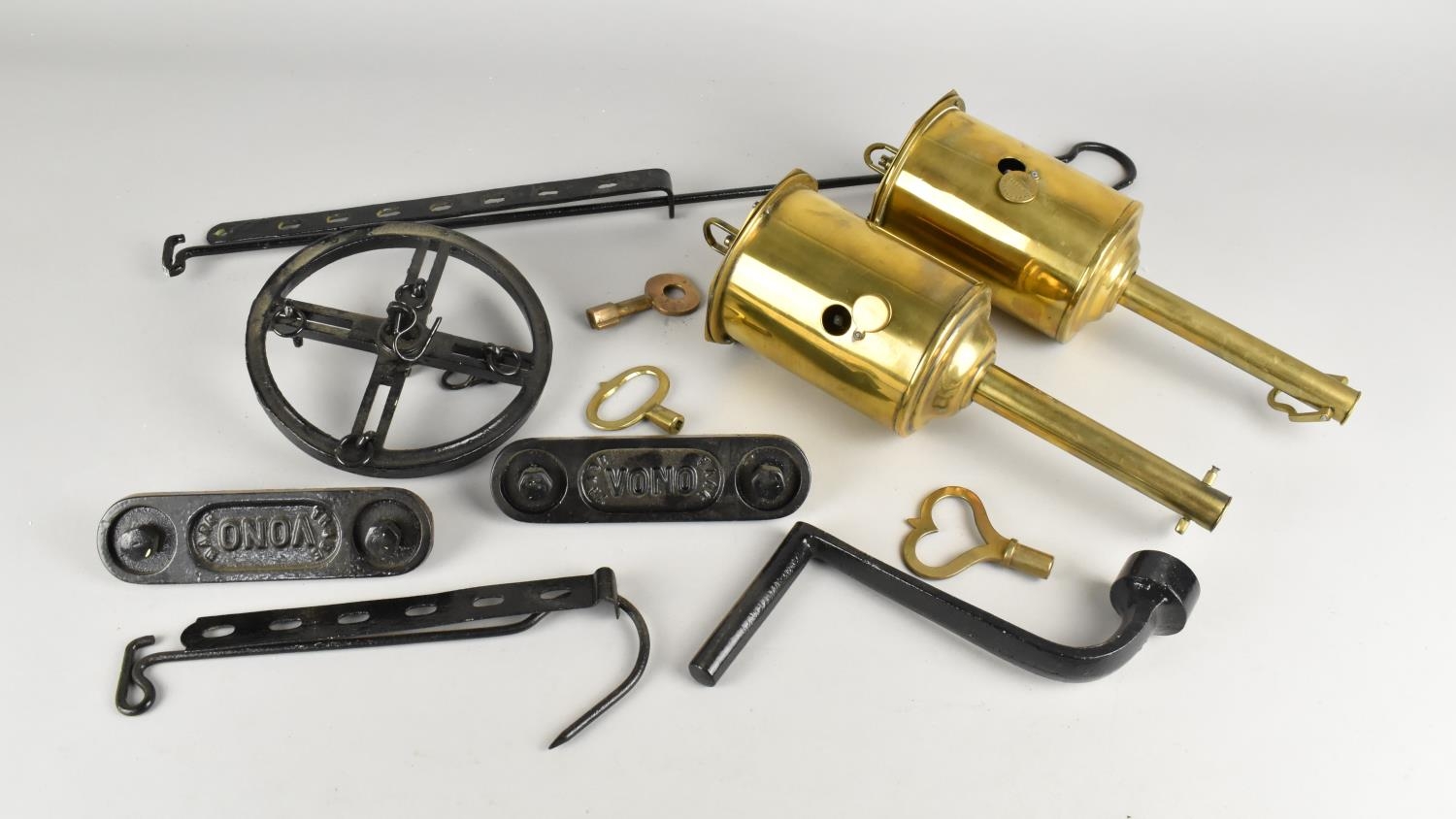 Two Brass Meat Jacks with Accessories
