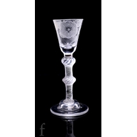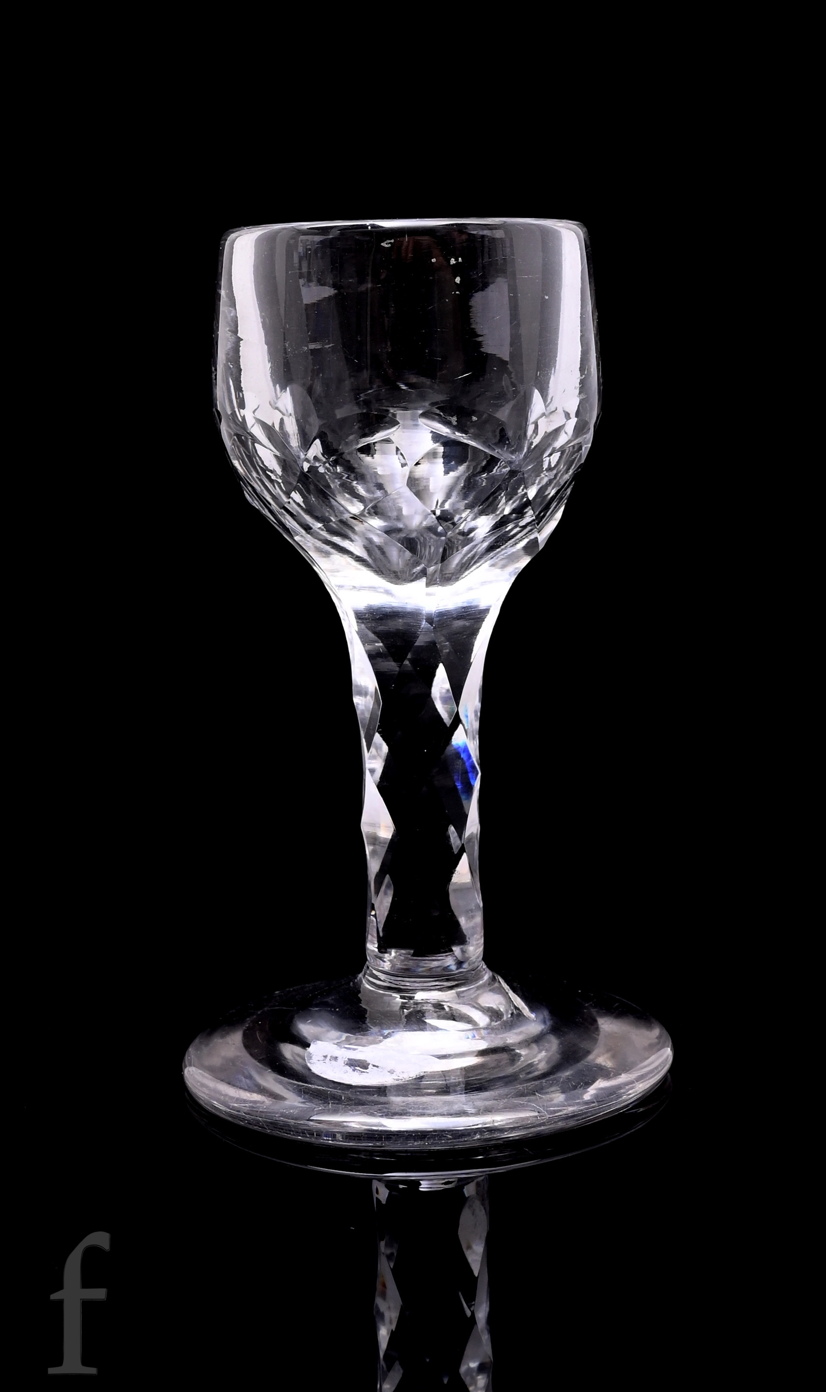 An 18th Century drinking glass circa 1770, the deceptive round funnel bowl with flat cut decoration above a hollow diamond facet stem, raised to a conical foot, height 11.5cm.