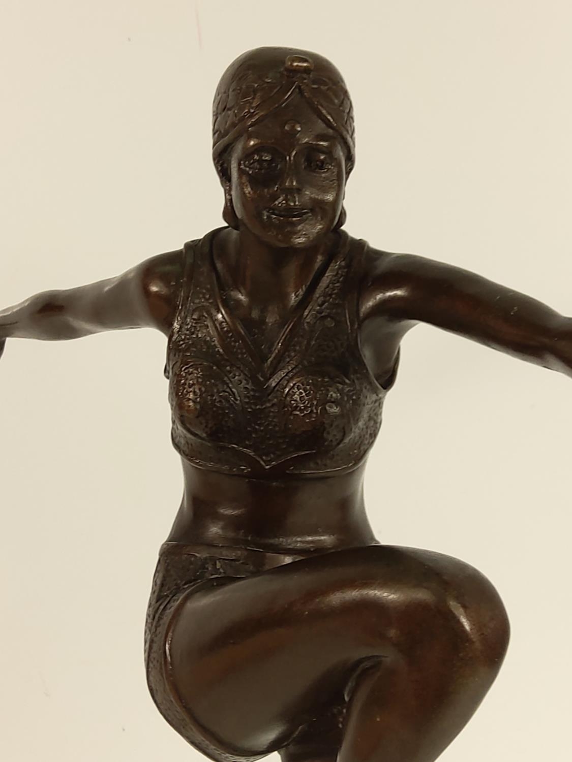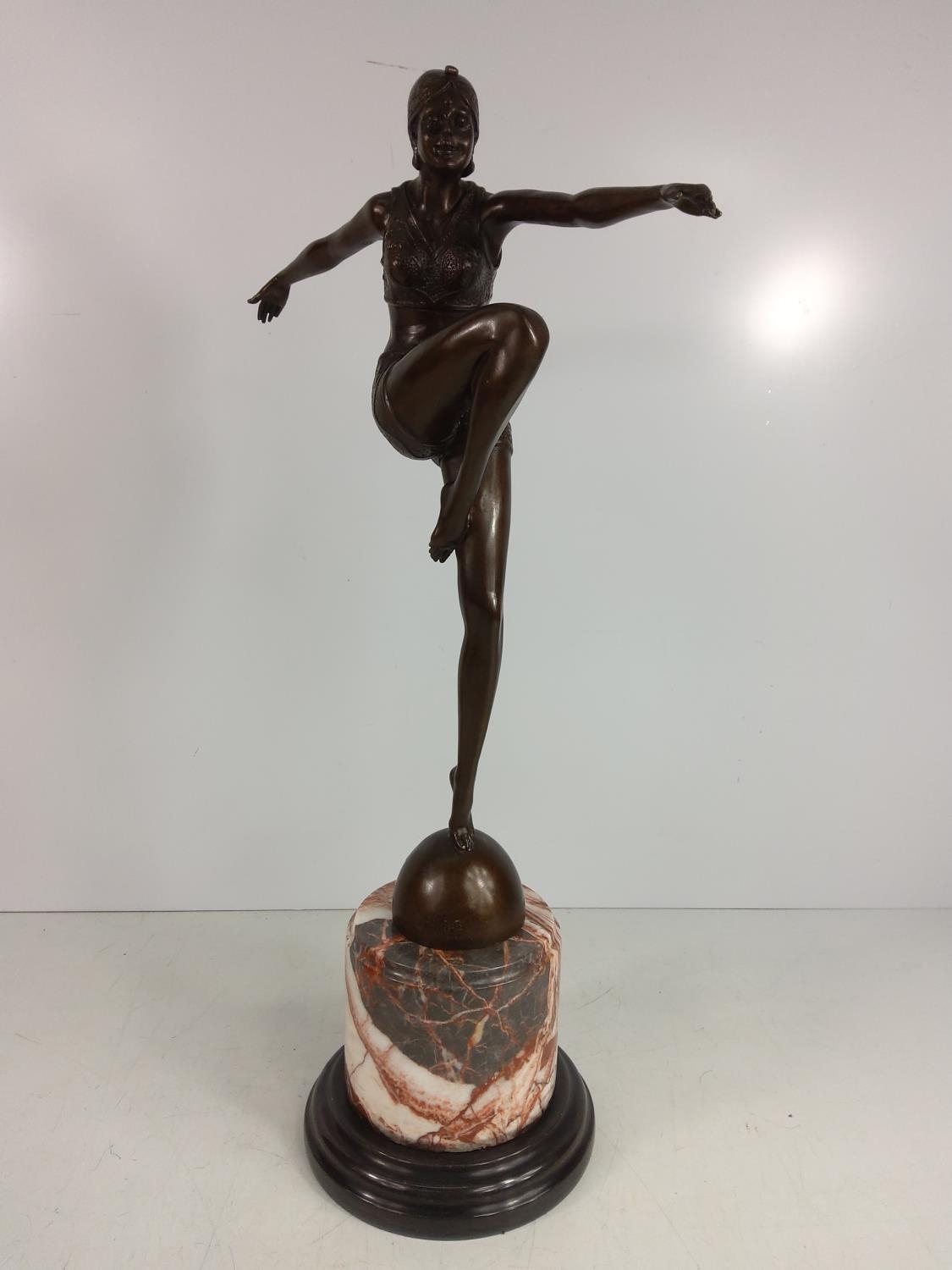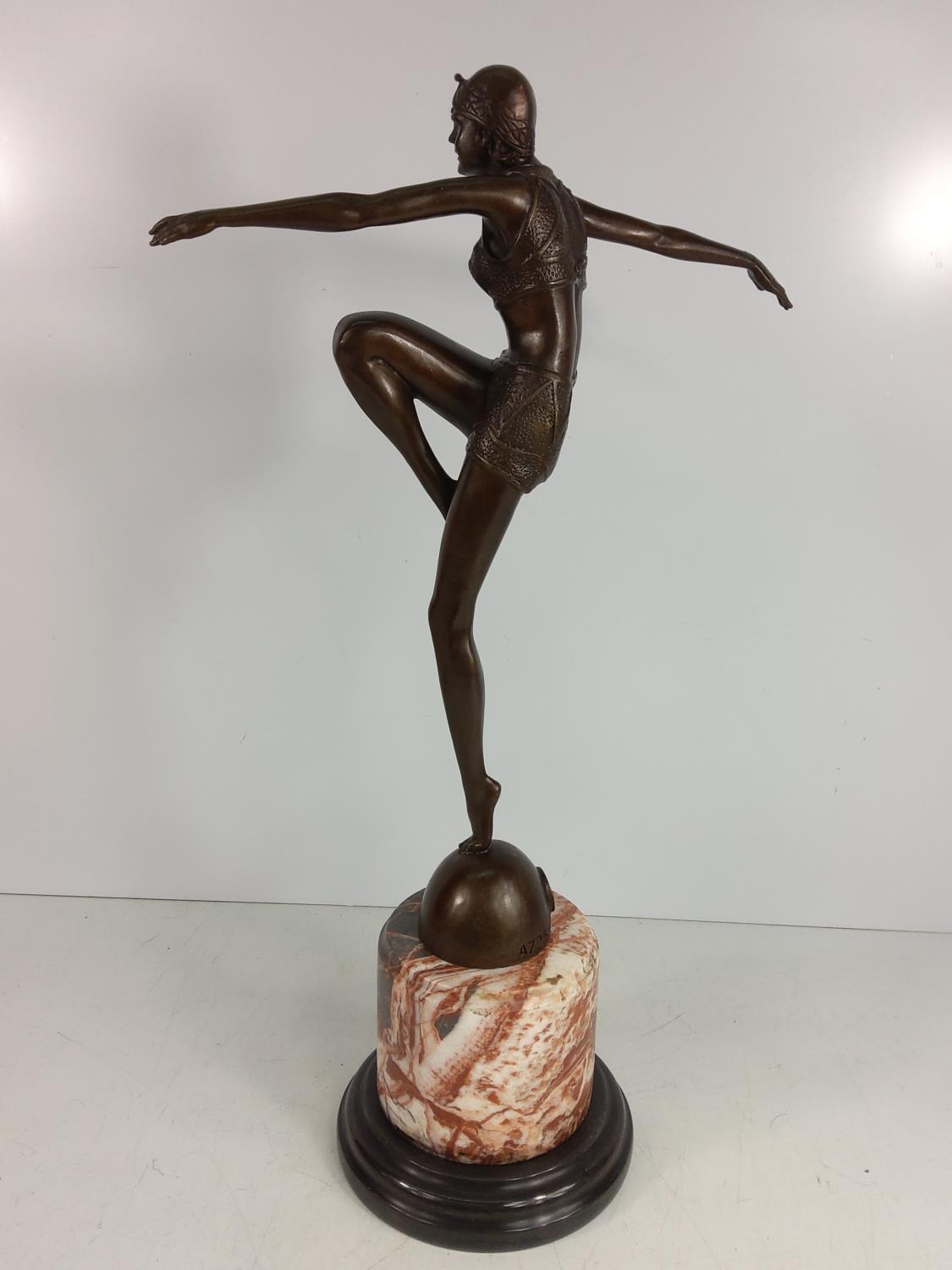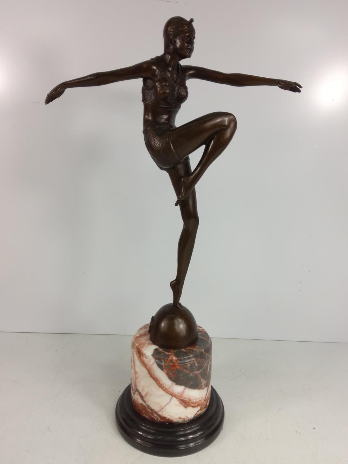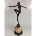Cast bronze dancing lady on marble base, 55cms in height