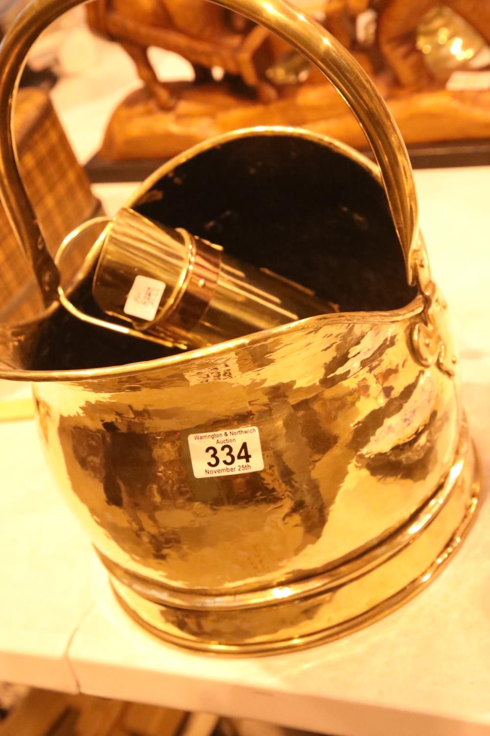 Large brass coal bucket and other brass items. Not available for in-house P&P