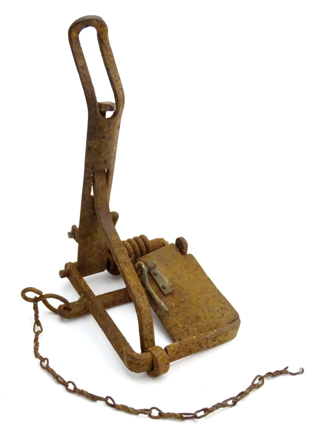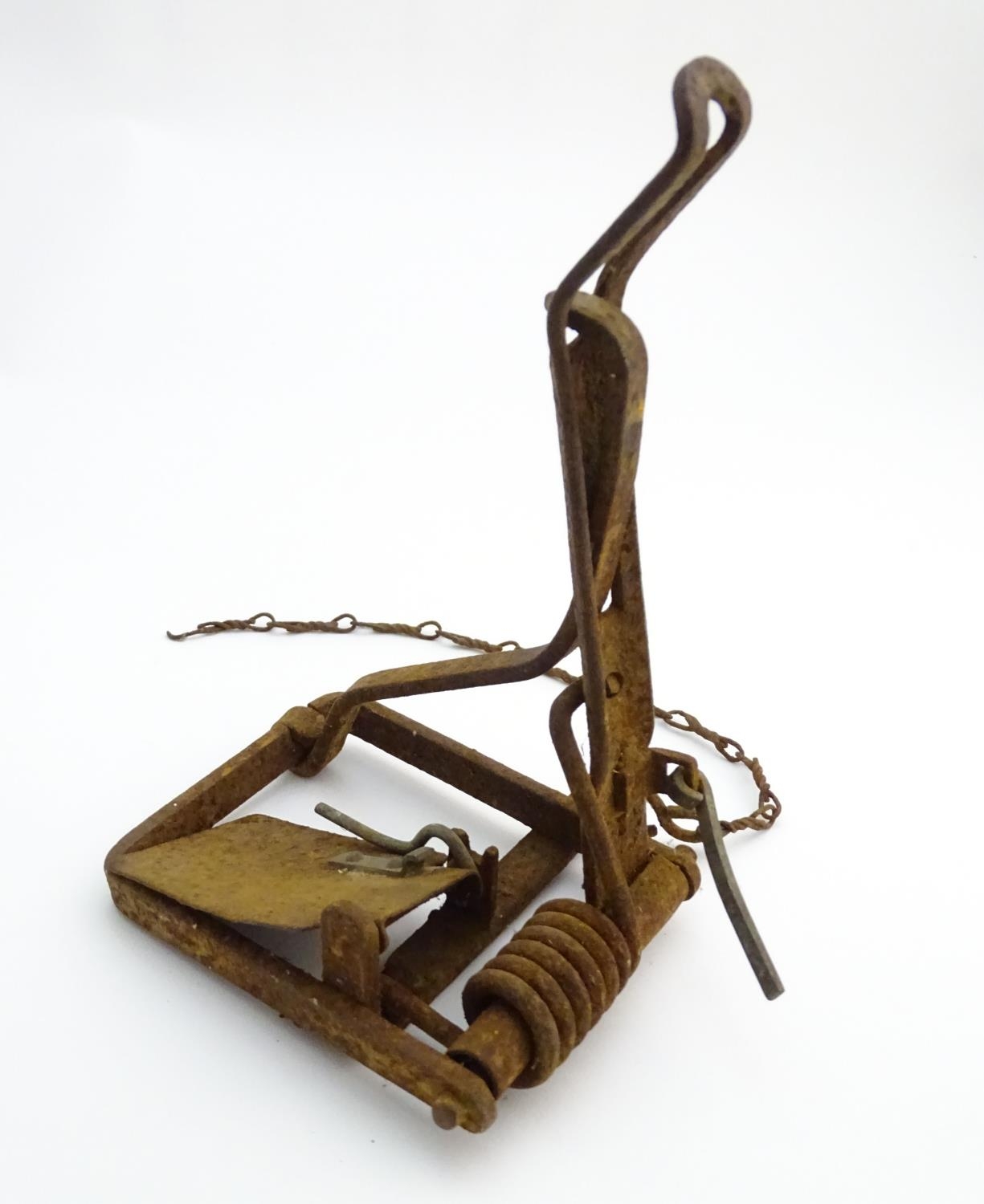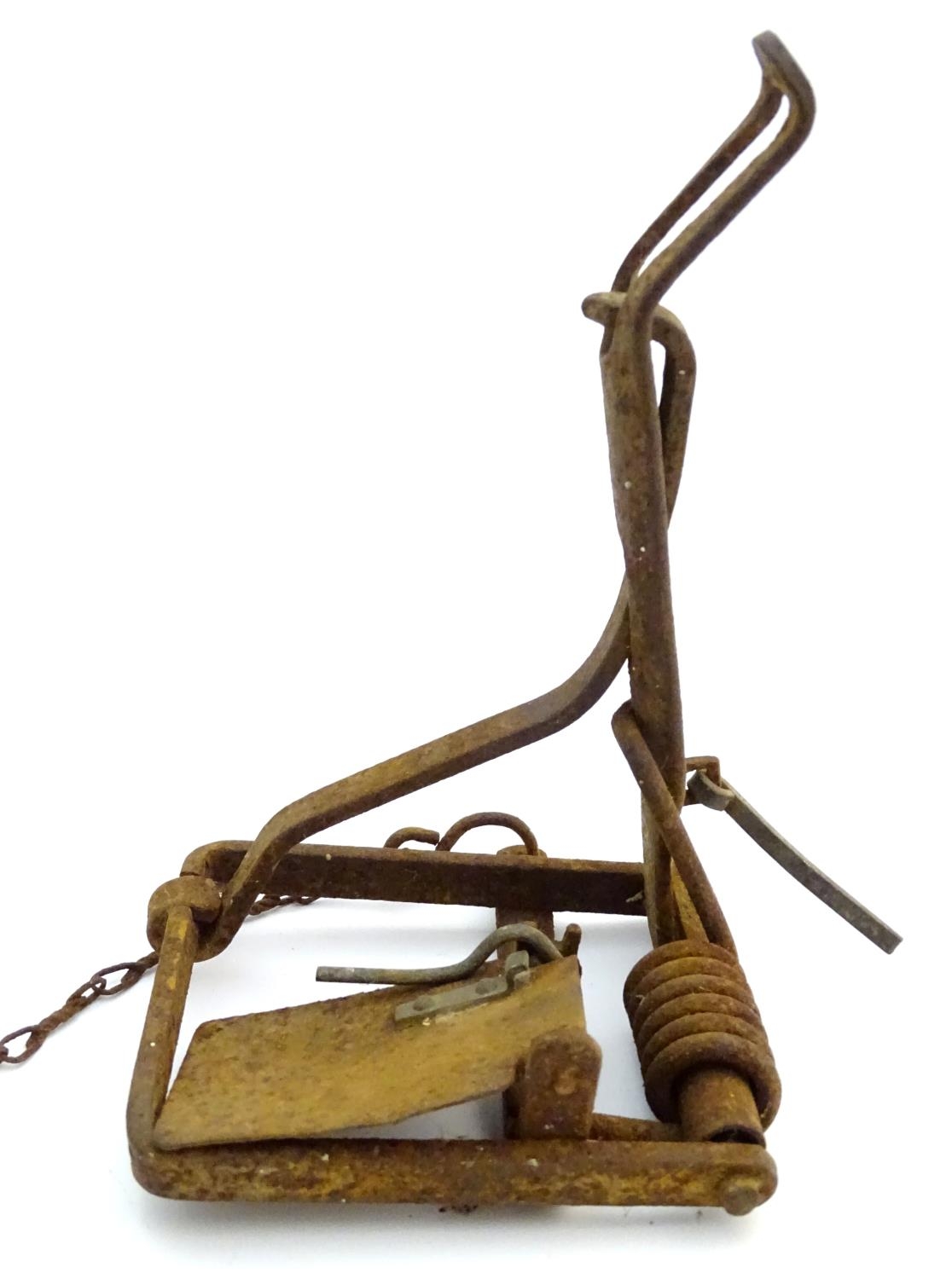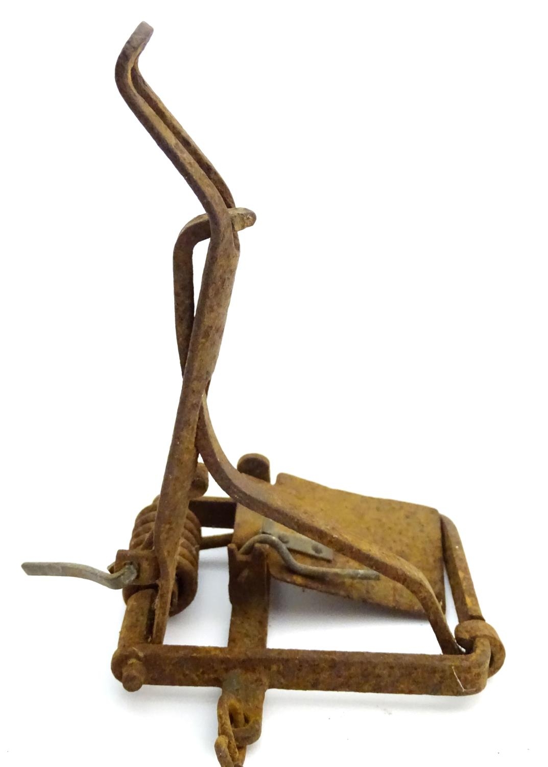 Antique trap: a mid-20thC Sawyer RSPCA rabbit trap, 7 3/4" tall