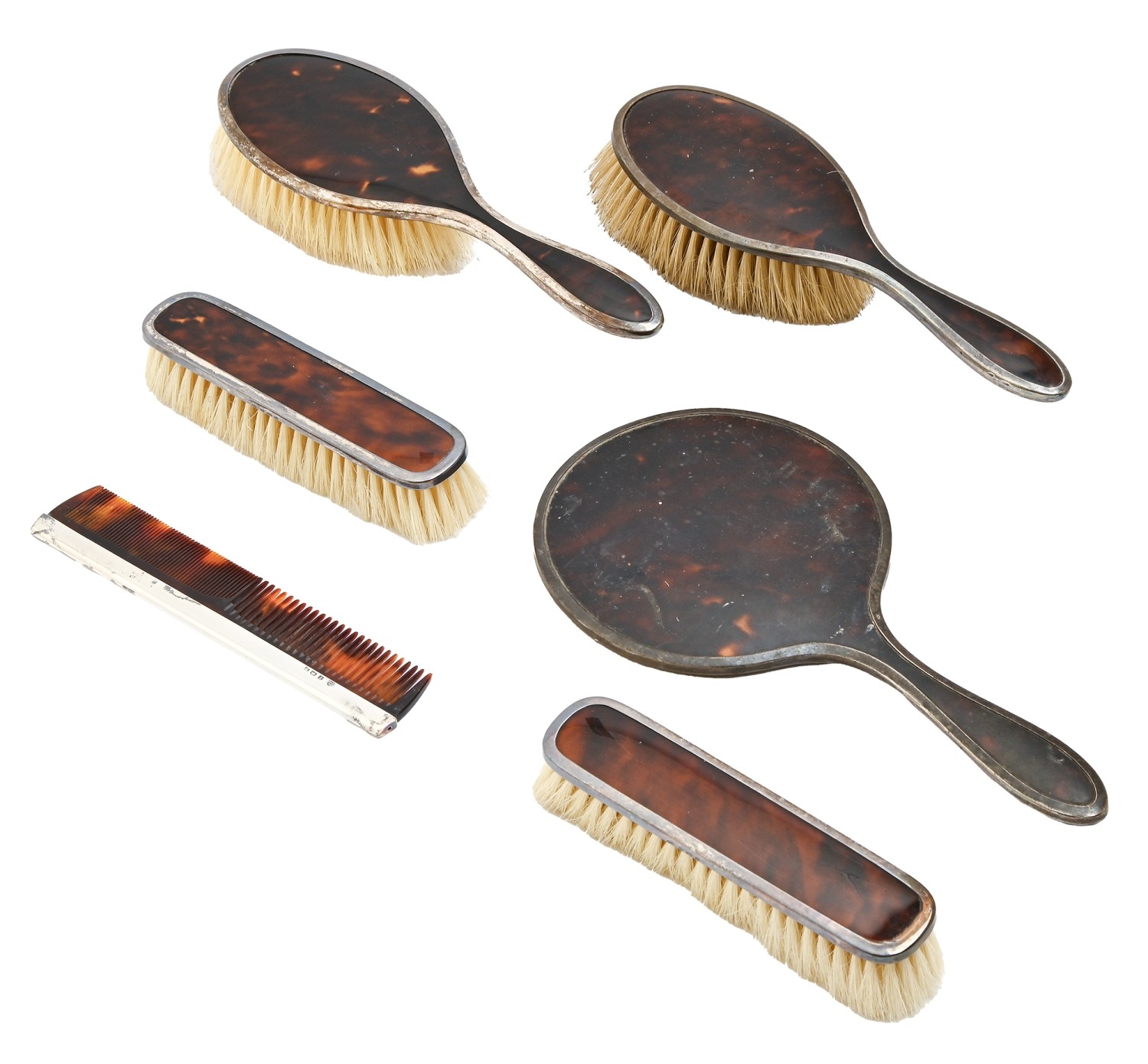 A George V tortoiseshell-backed silver brush set, by Adie Bros Ltd, Birmingham 1933 and 1934 (6)