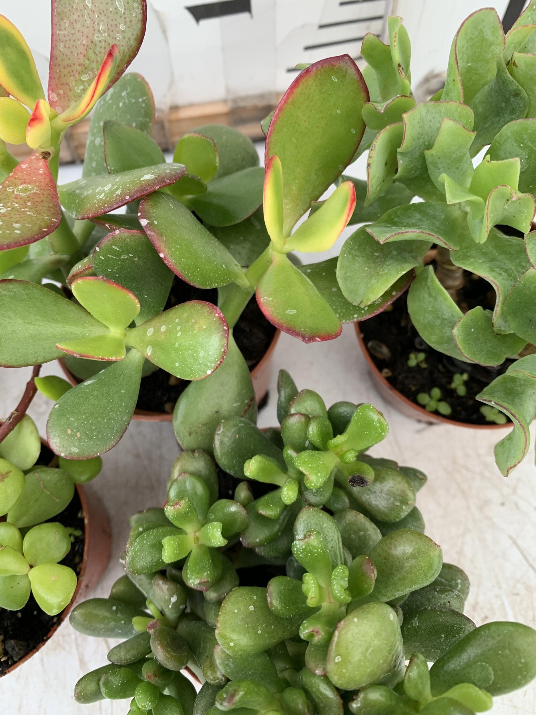 FIVE MIXED VARIETIES OF CRASSULA IN P8CM POTS. TO BE SOLD FOR THE FIVE