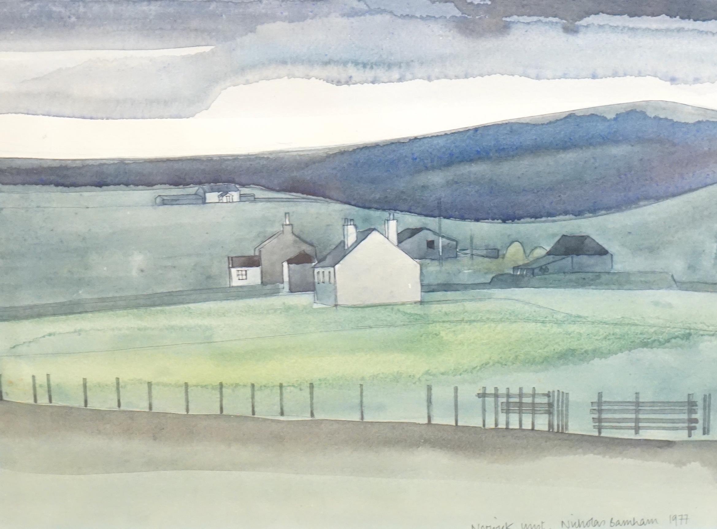 Nicholas Barnham (1939-2021), watercolour, 'Crofts at Norwick, Shetland', signed and dated 1977, Gallery label verso, 22 x 29cm