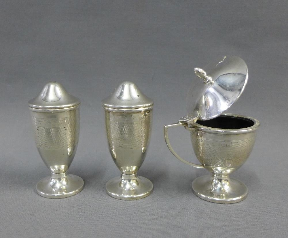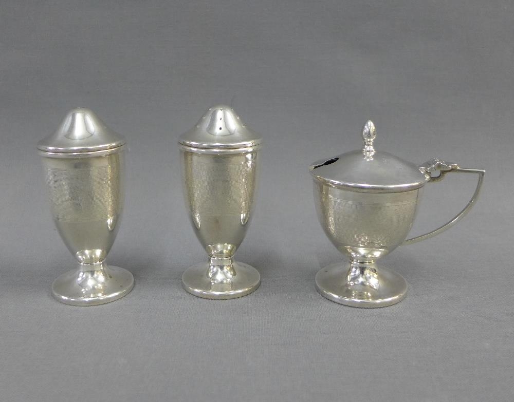George VI silver three piece condiment set, Birmingham 1940, (3)