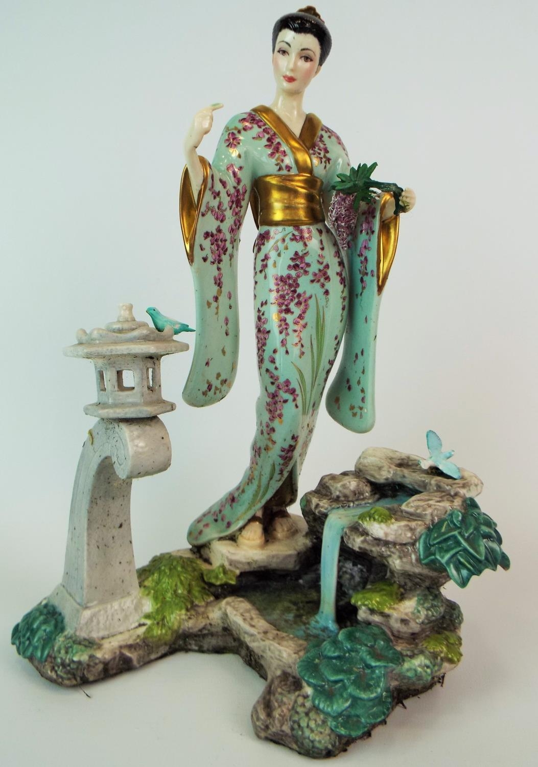 Franklin Mint porcelain Figurine. 12 inches tall (small bird on right is detached in need of glue)