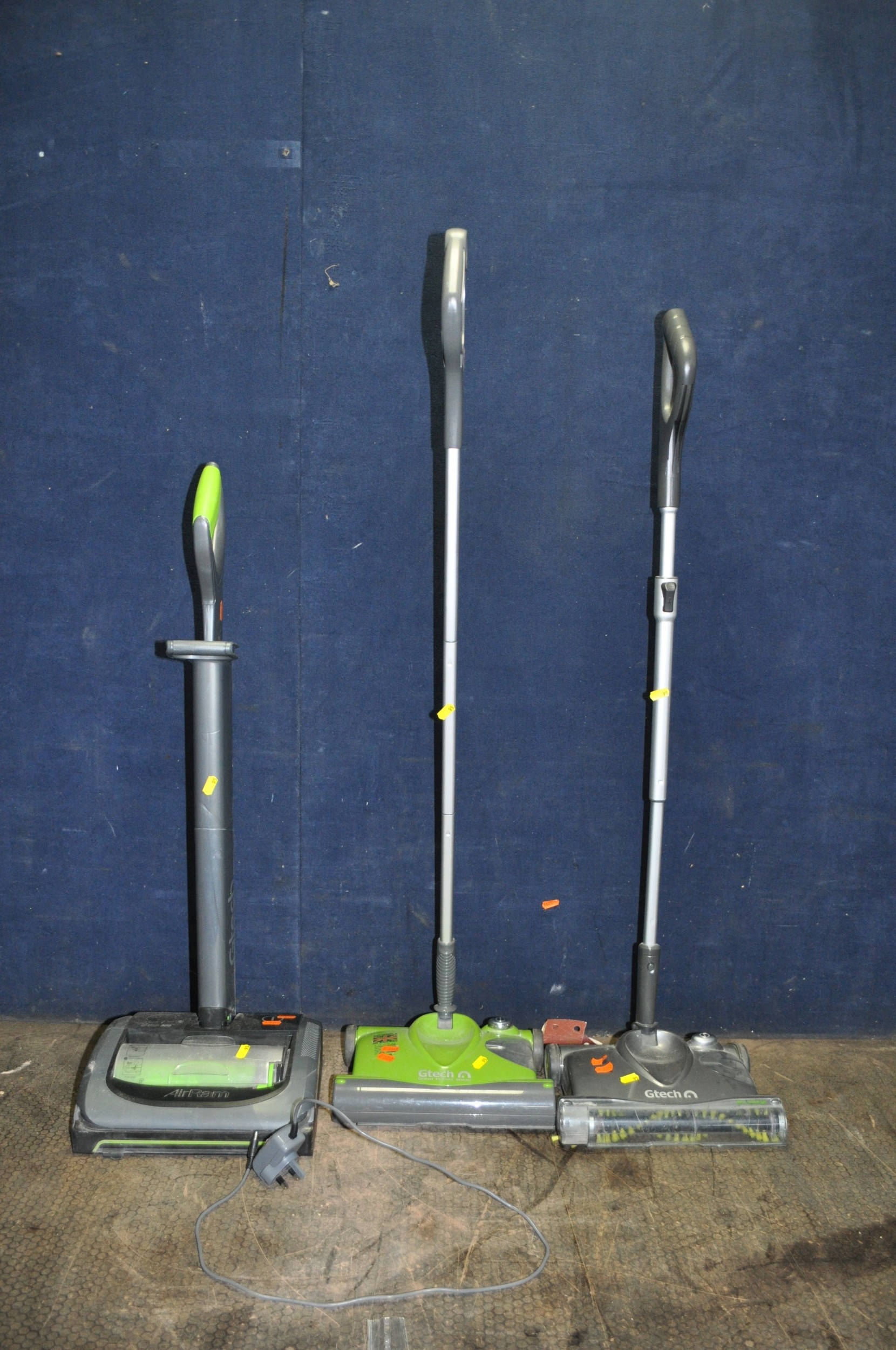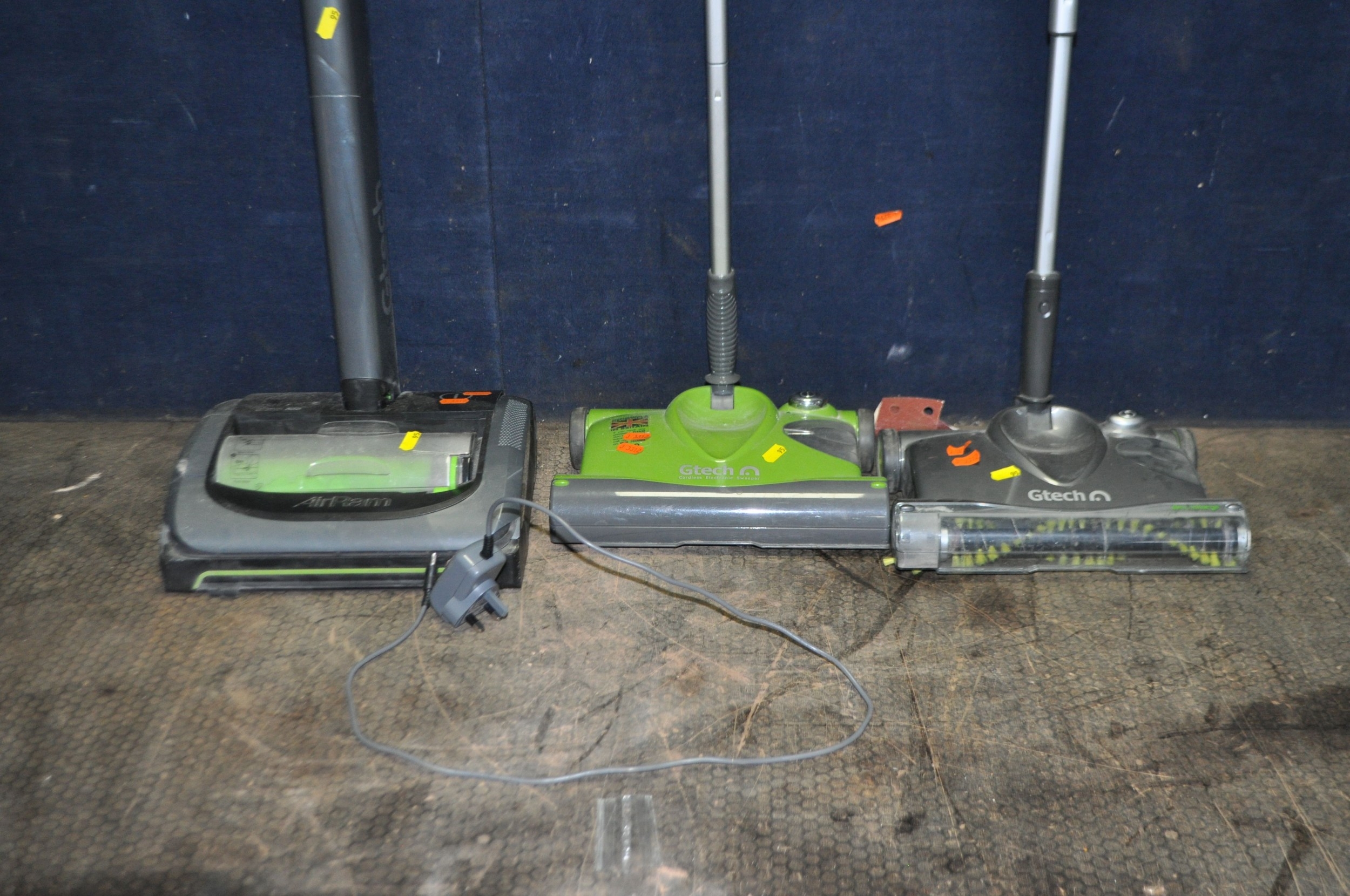 A G TECH AIR RAM CORDLESS VACUUM CLEANER with charger (PAT pass and working)and two smaller G Tech vacuums (no charger, one has charge the other does not)