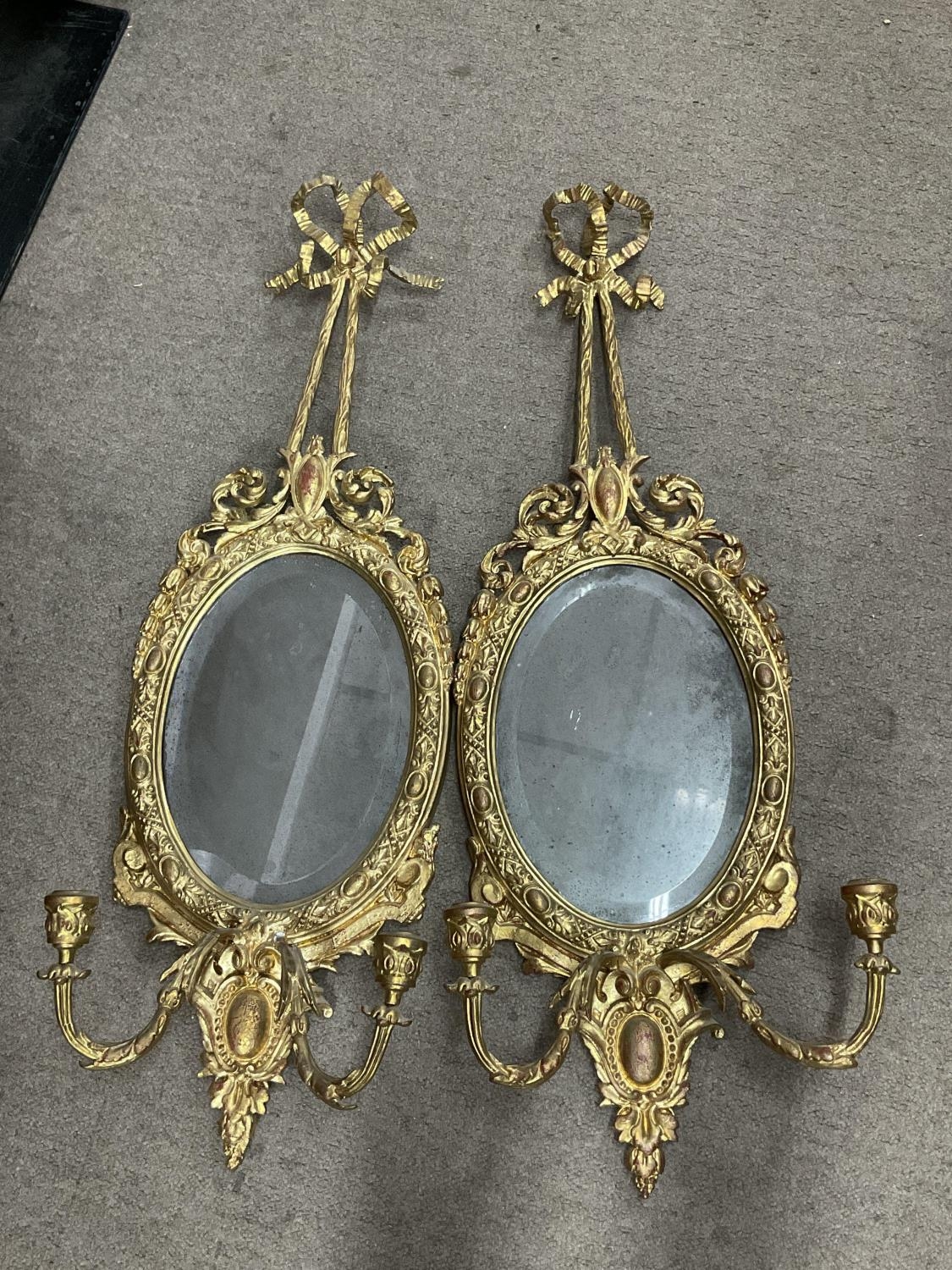 Two early gilt regency style period mirrors with built in candle sconces.