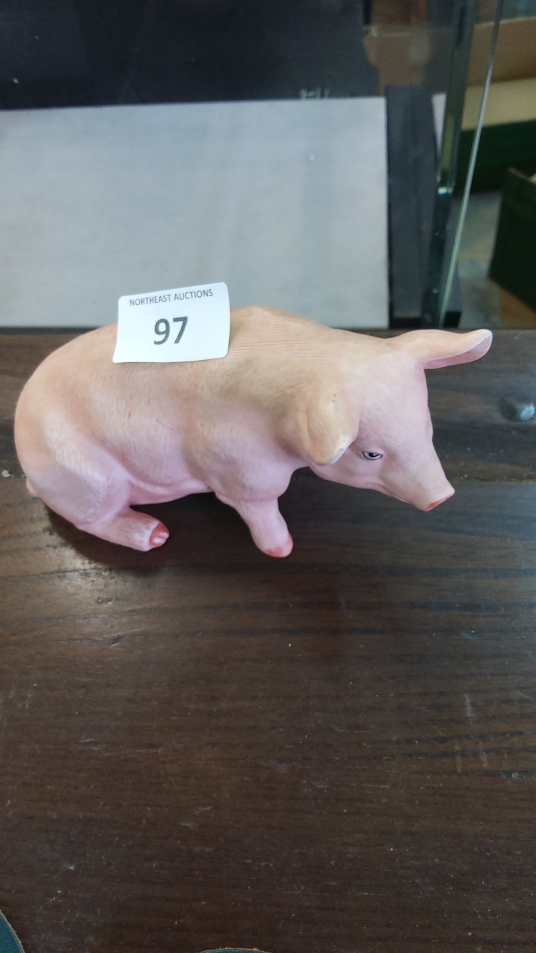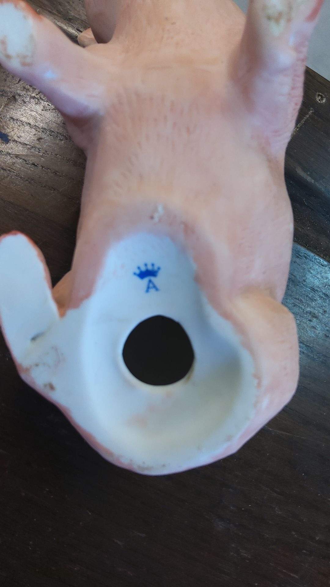 Porcelain pig figurine, featuring a blue crown and letter "A" mark, from Capodimonte porcelain.