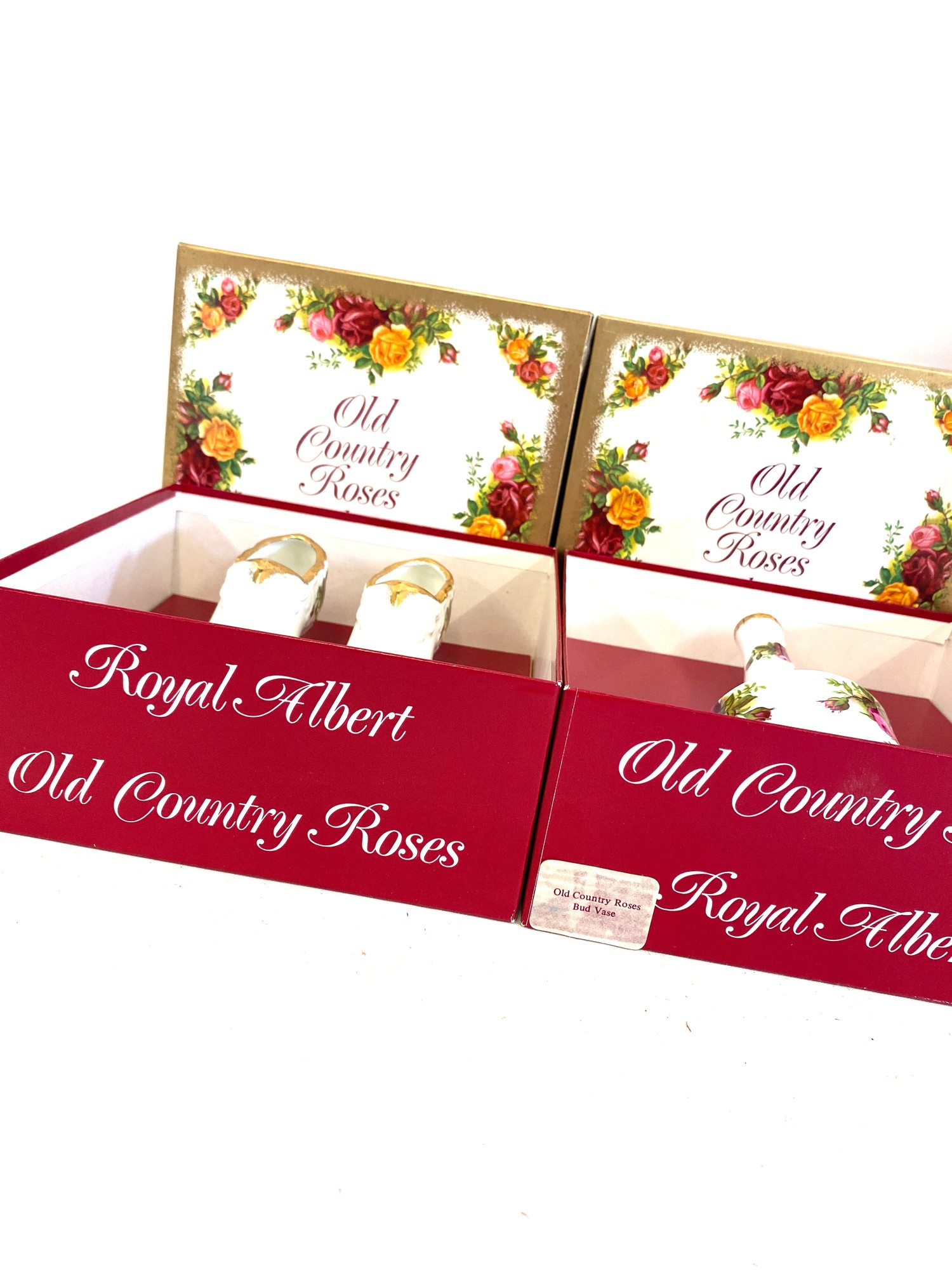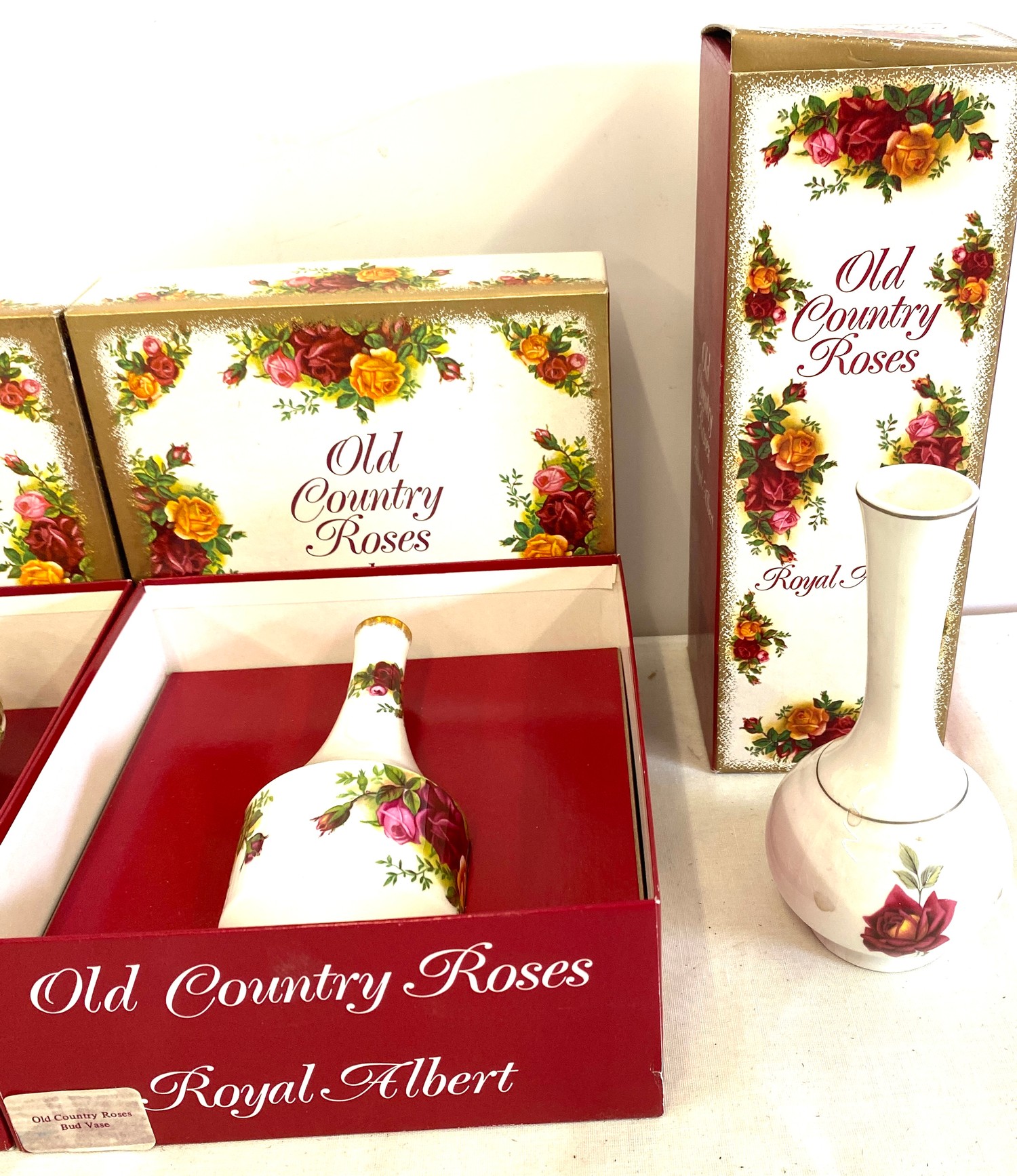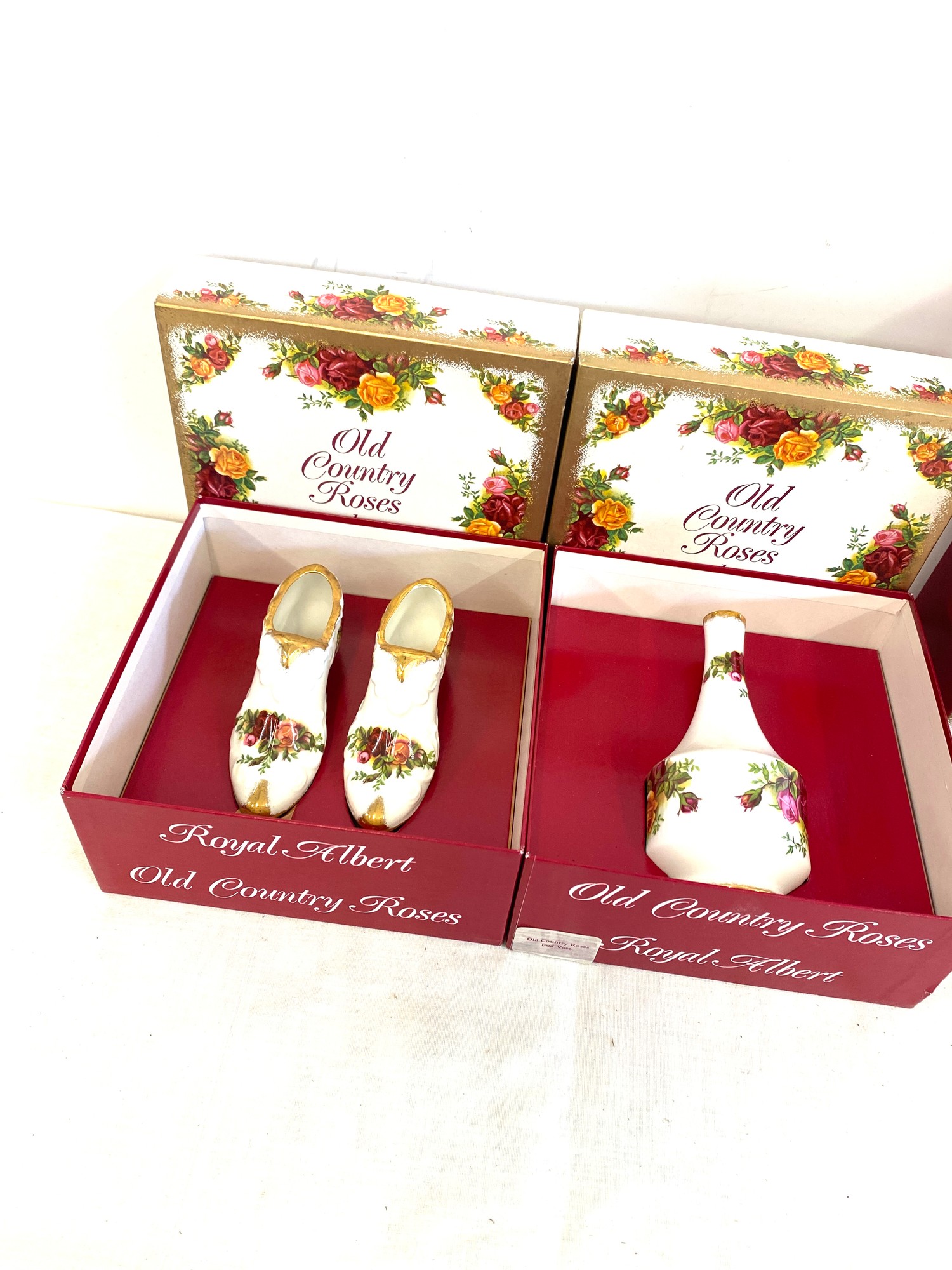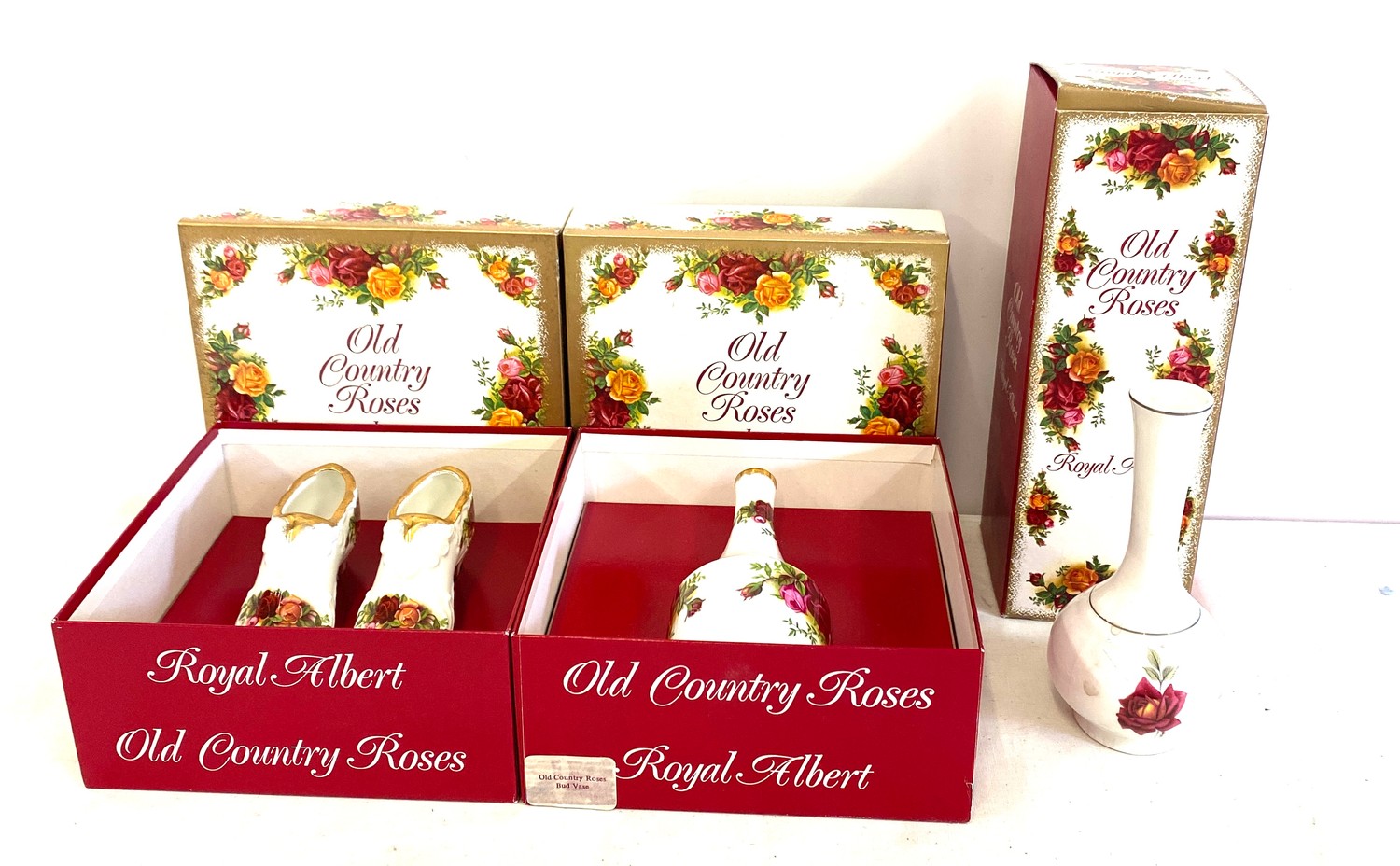 3 Boxed Royal Albert Old Country Roses pottery pieces includes vases etc