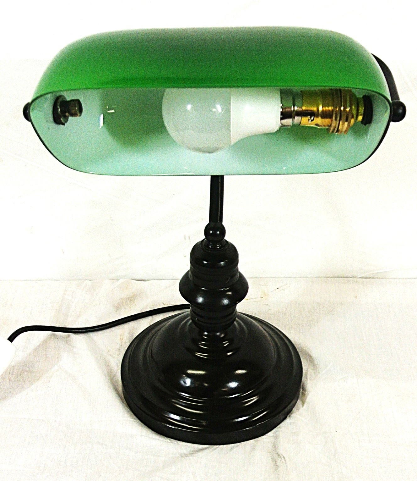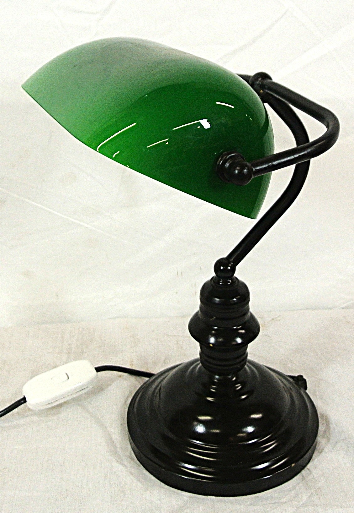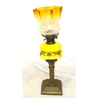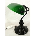 Art Deco style brass bankers lamp with adjustable tinted glass shade