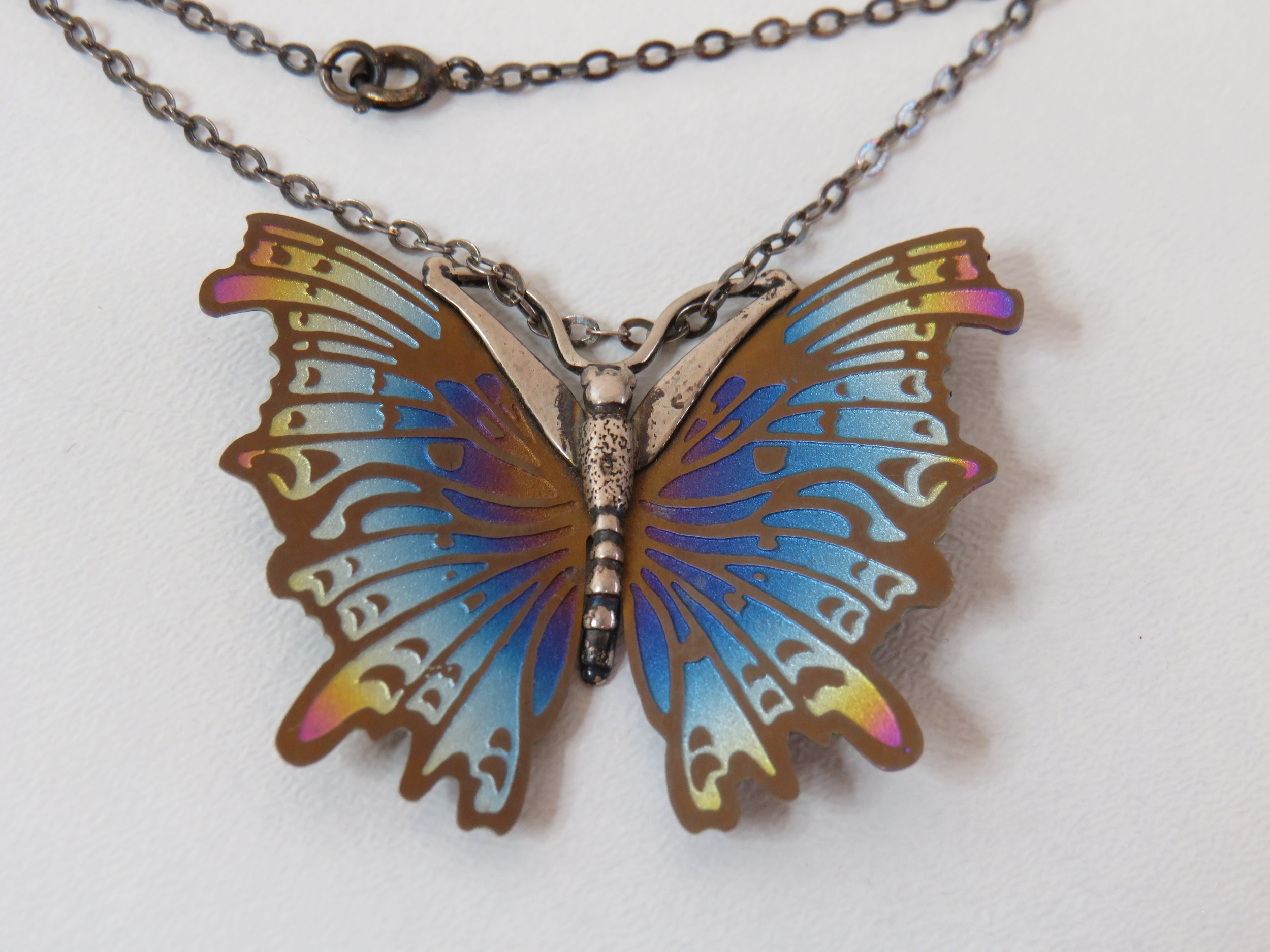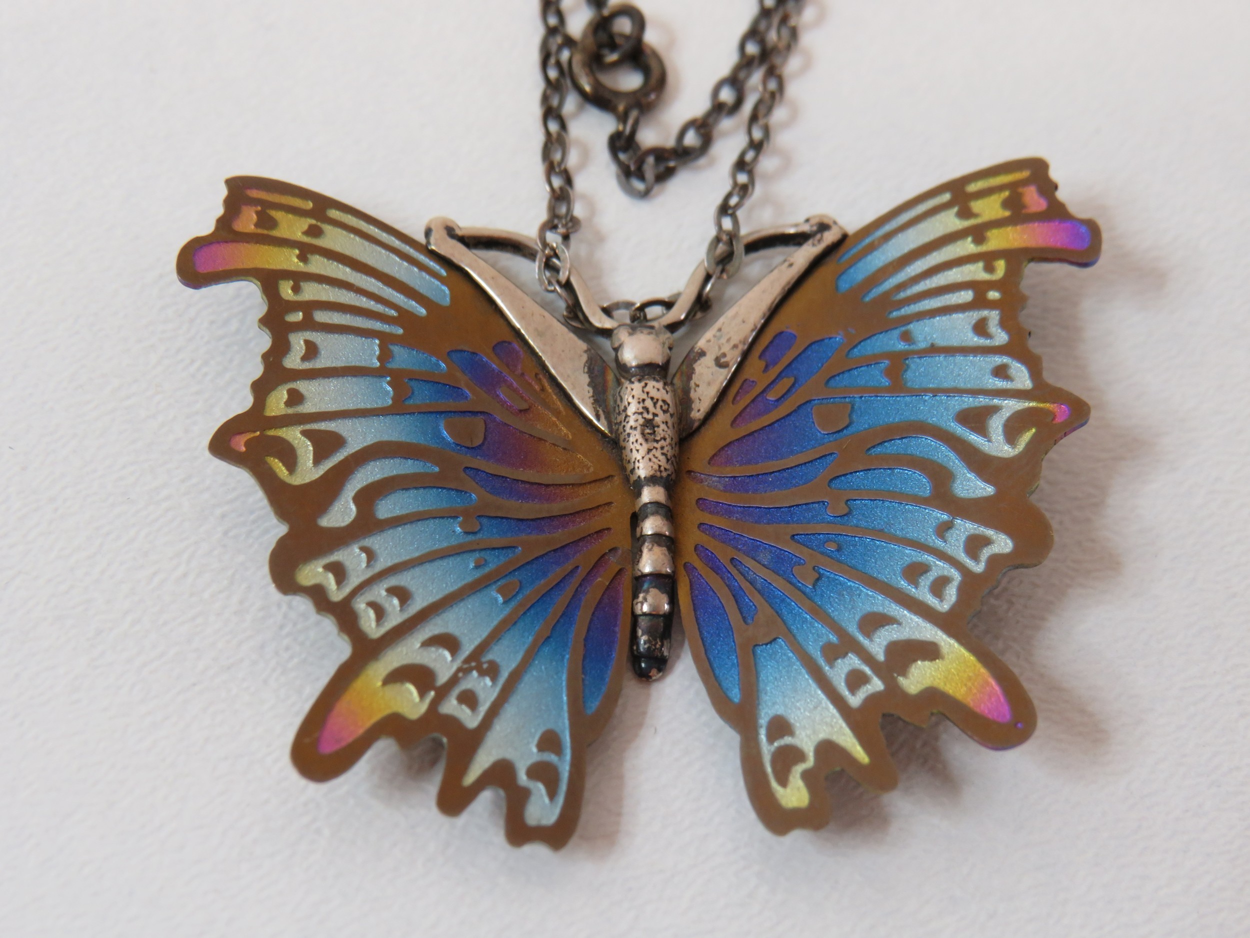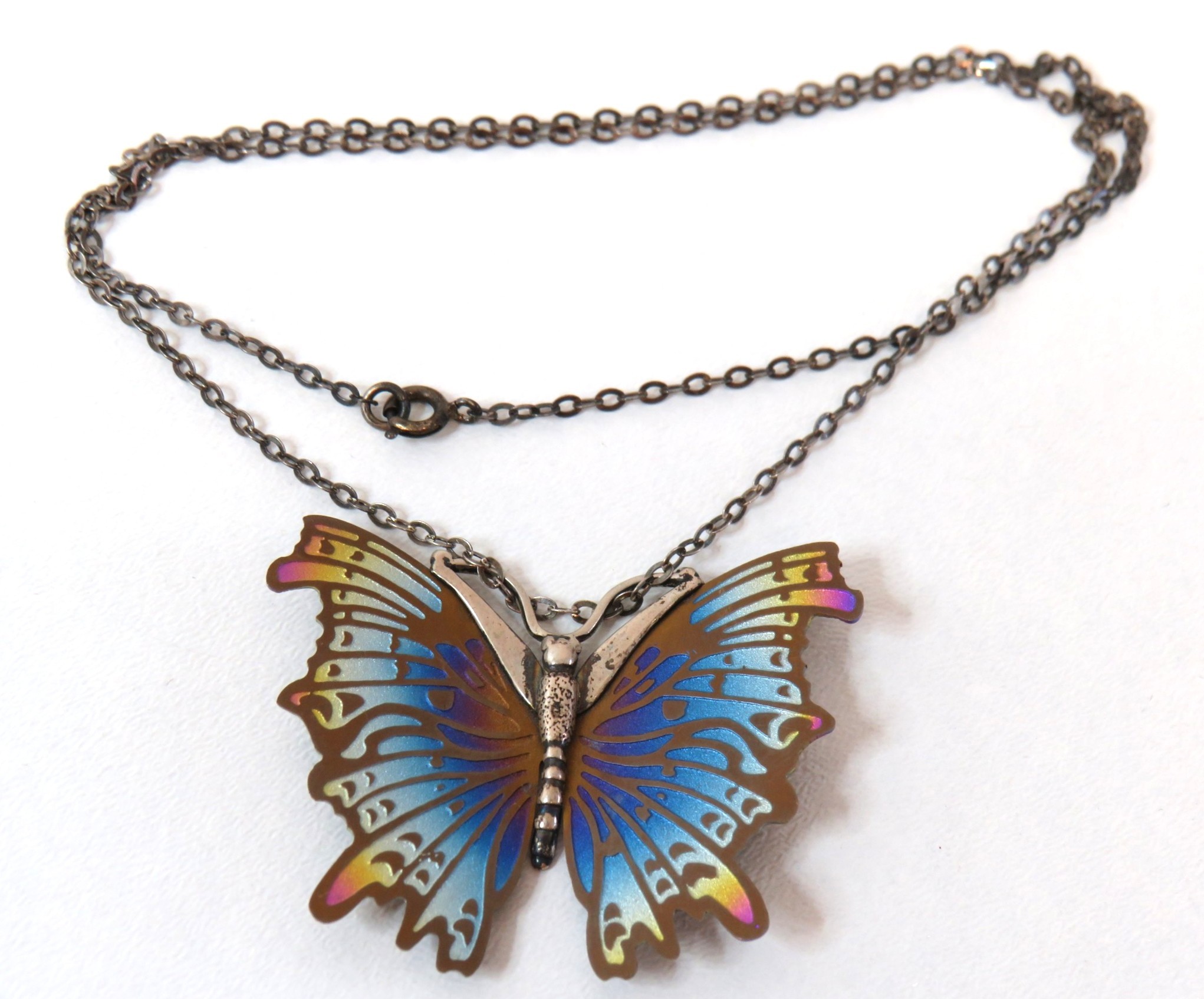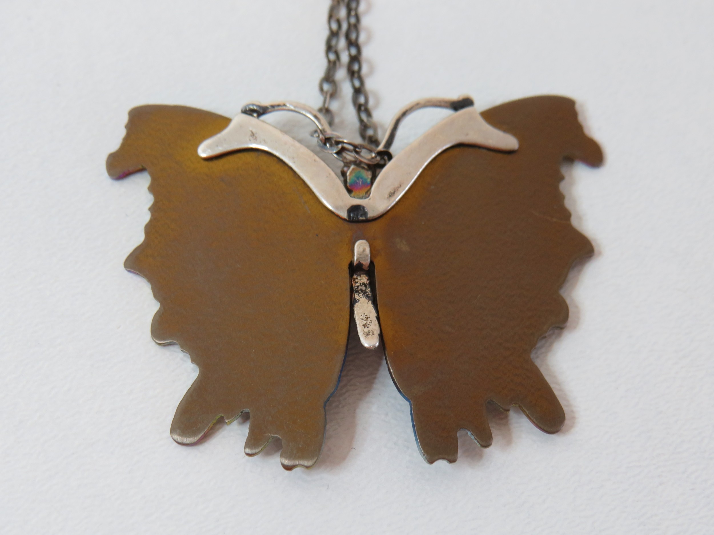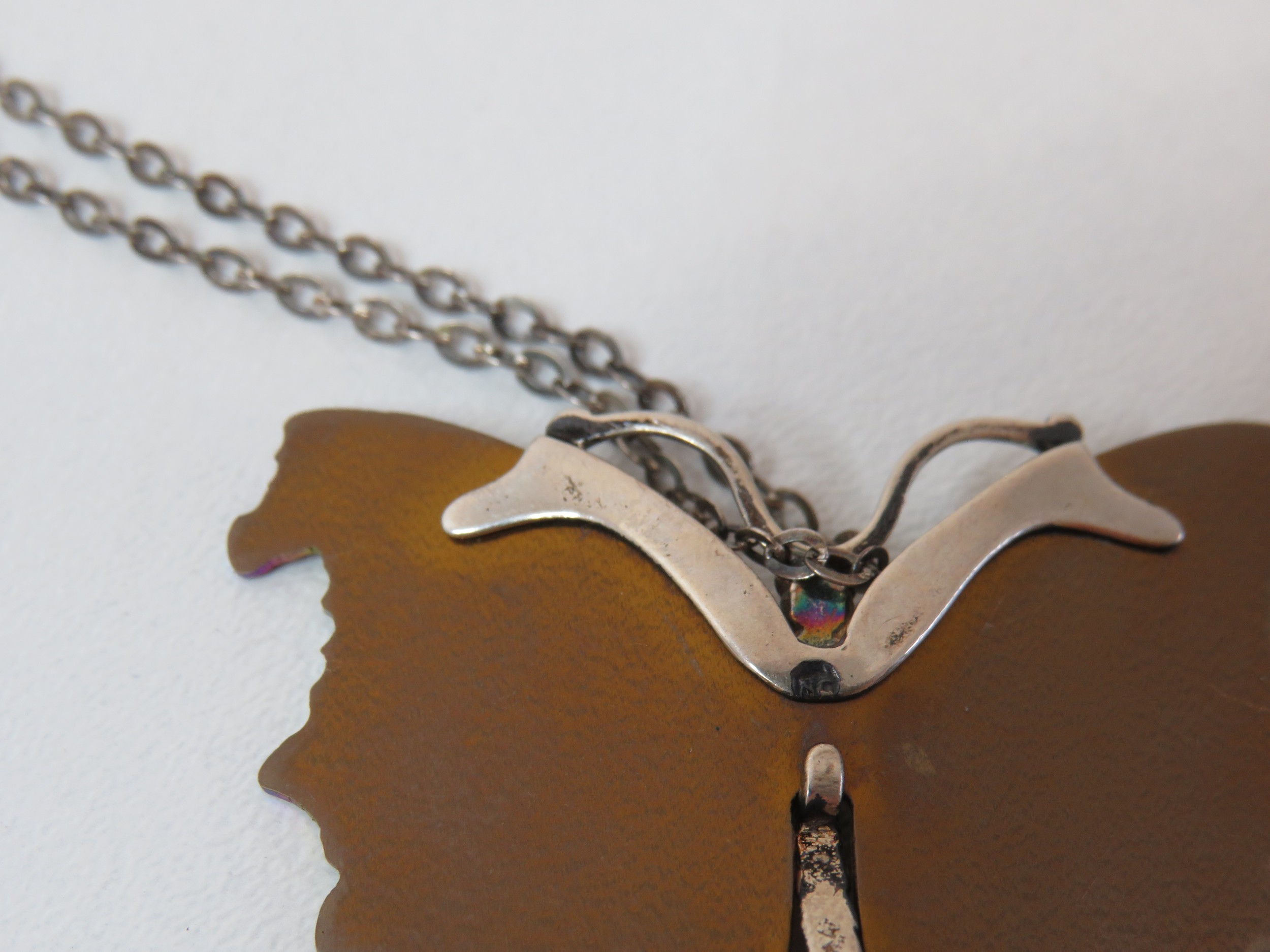 Vintage Scottish "Norman Grant" signed sterling silver & titanium butterfly pendant necklace